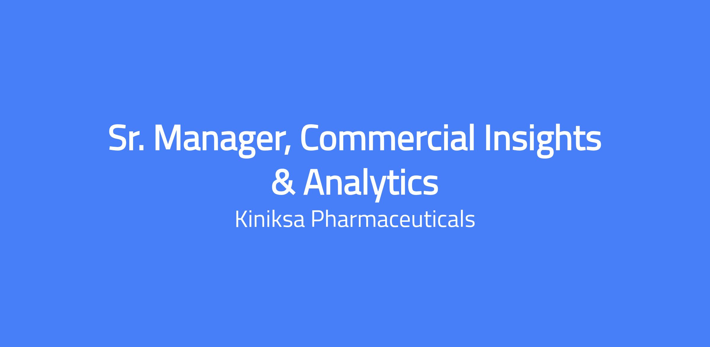 Reporting to the Director, BI, Insights and Analytics, the Senior Manager, Commercial Insights and Analytics, is a critical role responsible for measuring Kiniksa’s ongoing commercialization efforts and identifying opportunities to better drive adoption of ARCALYST through the generation of deep insights. We are seeking an analytically driven, strategic thinker to drive robust insights generation and provide decision support that leads to tangible business impacts. As an important member of the Commercial Operations team, this individual will deliver to the organization an ongoing, insightful narrative on the drivers and barriers to brand performance, and drive forward innovative approaches to leverage analytics, data, and technology to support ARCALYST. This role is based in our Lexington office with a hybrid schedule of 4 days in the office and 1 day remote.