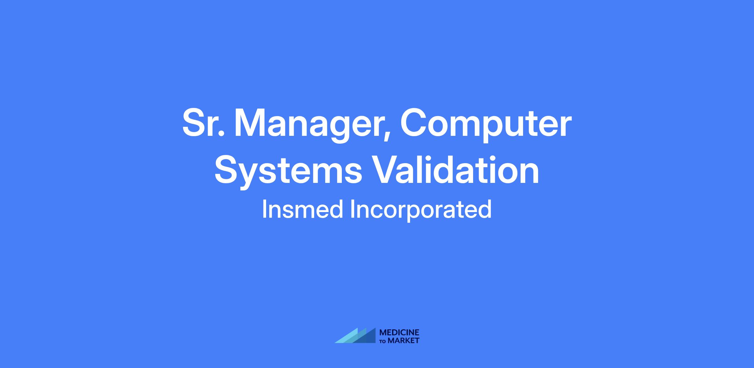 Sr. Manager, Computer Systems Validation at Insmed. Lead CSV strategy and oversee validation of GxP computerized systems, ensuring ongoing validation and compliance across projects; onsite at the San Diego site.