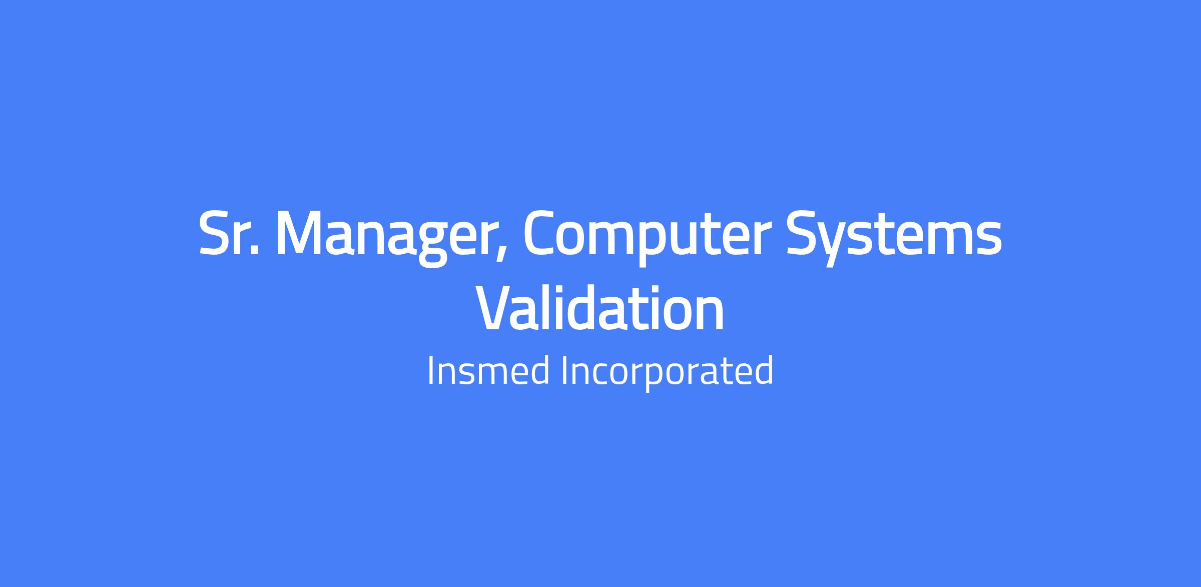 Sr Manager, CSV on the Computer System Validations IT team. Based in San Diego, reporting to the Director, CSV you’ll engage on CSV projects as a key team member and provide guidance to ensure computerized systems are deployed following lifecycle management and remain in a validated state per SOPs, regulatory and security requirements.