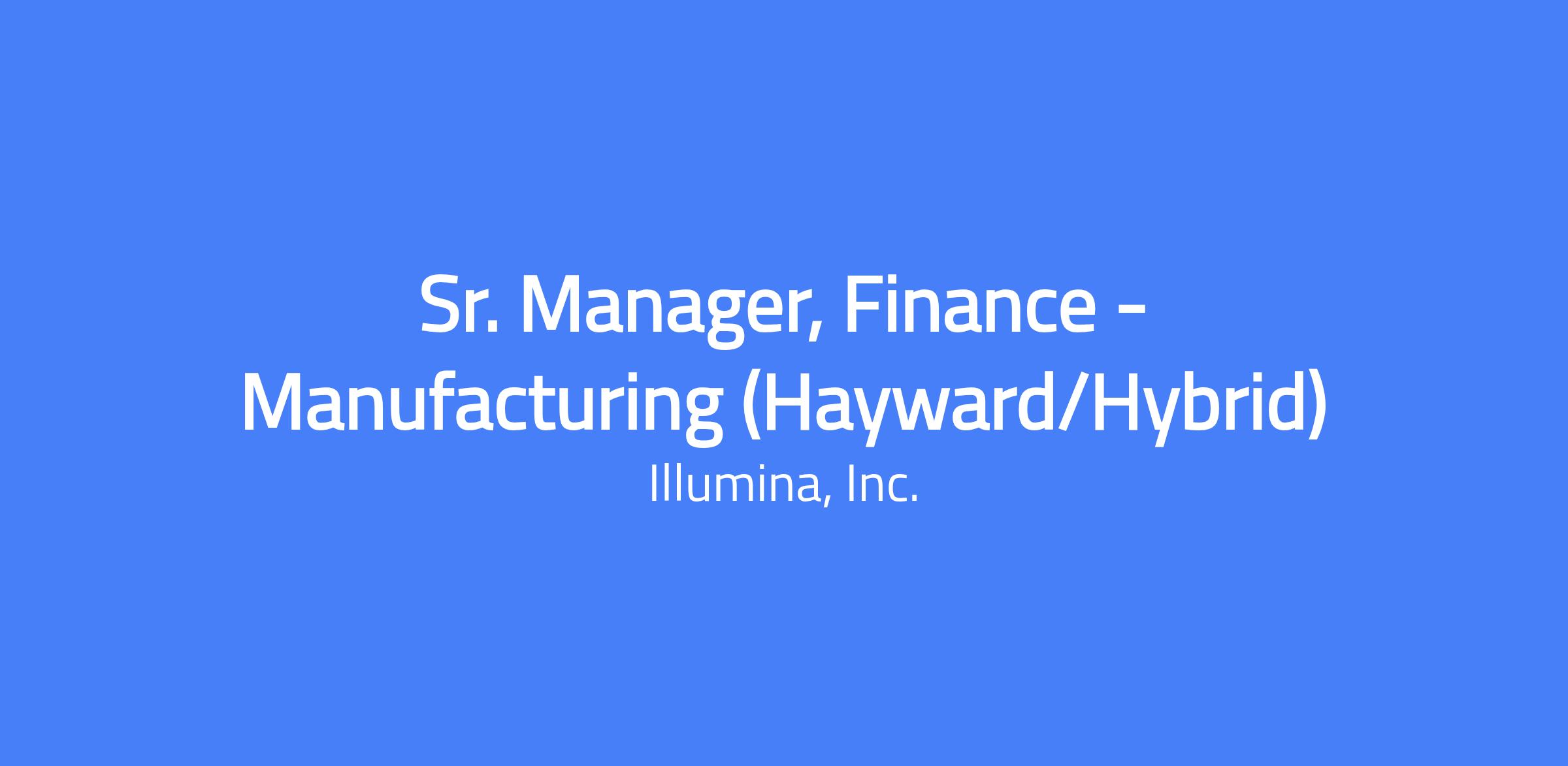 What if the work you did every day could impact the lives of people you know? Or all of humanity? At Illumina, we are expanding access to genomic technology to realize health equity for billions of people around the world. Our efforts enable life-changing discoveries that are transforming human health through the early detection and diagnosis of diseases and new treatment options for patients. Working at Illumina means being part of something bigger than yourself. Every person, in every role, has the opportunity to make a difference. Surrounded by extraordinary people, inspiring leaders, and world changing projects, you will do more and become more than you ever thought possible. Position Summary: The Sr. Manager, Finance, role oversees Sequencing Instruments Manufacturing and Life Cycle Management playing a critical role in financial planning, analysis, and strategic decision-making. It is a highly visible position supporting Operations and Finance leaders, requiring adaptability to fast-changing conditions while delivering timely, accurate analytics and reporting. The role partners closely with business leaders to ensure financial discipline, optimize operational performance, and drive long-term value creation. *This is a full-time role, Monday through Friday, with an expectation of 2- 3 in-office days per week and additional on-site presence as needed. The individual must reside in the Hayward area and be able to commute to our offices. Key Responsibilities: Financial Planning & Analysis: Lead FP&A activities, including annual operating plans for manufacturing spend, Production variance, OpEx, and CapEx. Business Partnership: Act as a trusted financial advisor to site leadership, building strong relationships and supporting achievement of site priorities. Financial Close & Reporting: Manage monthly close processes and deliver timely reporting on OpEx, CapEx, material variances, manufacturing absorption, and efficiency metrics. Forecasting & Variance Analysis: Prepare financial statements, monthly forecasts, and variance reports to drive actionable insights. Strategic Decision Support: Collaborate with cross-functional SMEs to evaluate financial implications of strategic initiatives and develop robust business cases. Performance Management: Partner with systems teams and finance leads to enhance visibility into KPIs and share best practices across sites. Cost Optimization: Work with business SMEs to monitor GQO costs and identify margin improvement opportunities. Track and report cost saving initiative. Compliance & Accuracy: Ensure financial data integrity and compliance with corporate policies and procedures. Value Creation: Maximize long-term shareholder value while safeguarding corporate assets. Listed responsibilities are an essential, but not exhaustive list, of the usual duties associated with the position. Changes to individual responsibilities may occur due to business needs. Requirements: Typically requires a Bachelor’s degree in Finance, Accounting, Business Administration, or related field, and a minimum of 12 years of progressively responsible Finance experience, including 3-6 years of Management experience. Strong knowledge of cost accounting, inventory management, variance analysis, gross margin analysis, and budgeting and forecasting Solid understanding of US GAAP; familiarity with SEC reporting requirements is a plus Advanced proficiency in financial modeling and analysis Advanced Excel and PowerPoint skills required Experience with SAP and financial planning/reporting tools (e.g., TM1, Cognos BI); Thinkcell a plus Attributes & Capabilities: Trusted finance business partner with the ability to influence and collaborate across functions and levels, including senior leadership Strong strategic thinking skills, able to synthesize complex data into clear insights and recommendations for executive decision-making Demonstrated ability to assess risks and opportunities, proactively develop action plans, and support sound investment and operating decisions Adaptable and comfortable operating in fast-changing environments while delivering timely, accurate financial analysis Proven problem-solver with sound judgment and the ability to evaluate trade-offs and implications of different business approaches Strong leadership presence with the ability to coach, guide, and provide functional expertise to team members when needed Highly motivated, results-oriented, and committed to driving operational discipline and long-term value creation Excellent verbal and written communication skills, with the ability to build strong working relationships and credibility #LI-HYBRID The estimated base salary range for the Sr. Manager, Finance - Manufacturing (Hayward/Hybrid) role based in the United States of America is: $162,600 - $244,000. Should the level or location of the role change during the hiring process, the applicable base pay range may be updated accordingly. Compensation decisions are dependent on several factors including, but not limited to, an individual’s qualifications, location where the role is to be performed, internal equity, and alignment with market data. Additionally, all employees are eligible for one of our variable cash programs (bonus or commission) and eligible roles may receive equity as part of the compensation package. We offer a wide range of benefits as innovative as our work, including access to genomics sequencing, family planning, health/dental/vision, retirement benefits, and paid time off. We are a company deeply rooted in belonging, promoting an inclusive environment where employees feel valued and empowered to contribute to our mission. Built on a strong foundation, Illumina has always prioritized openness, collaboration, and seeking alternative perspectives to propel innovation in genomics. We are proud to confirm a zero-net gap in pay, regardless of gender, ethnicity, or race. We also have several Employee Resource Groups (ERG) that deliver career d