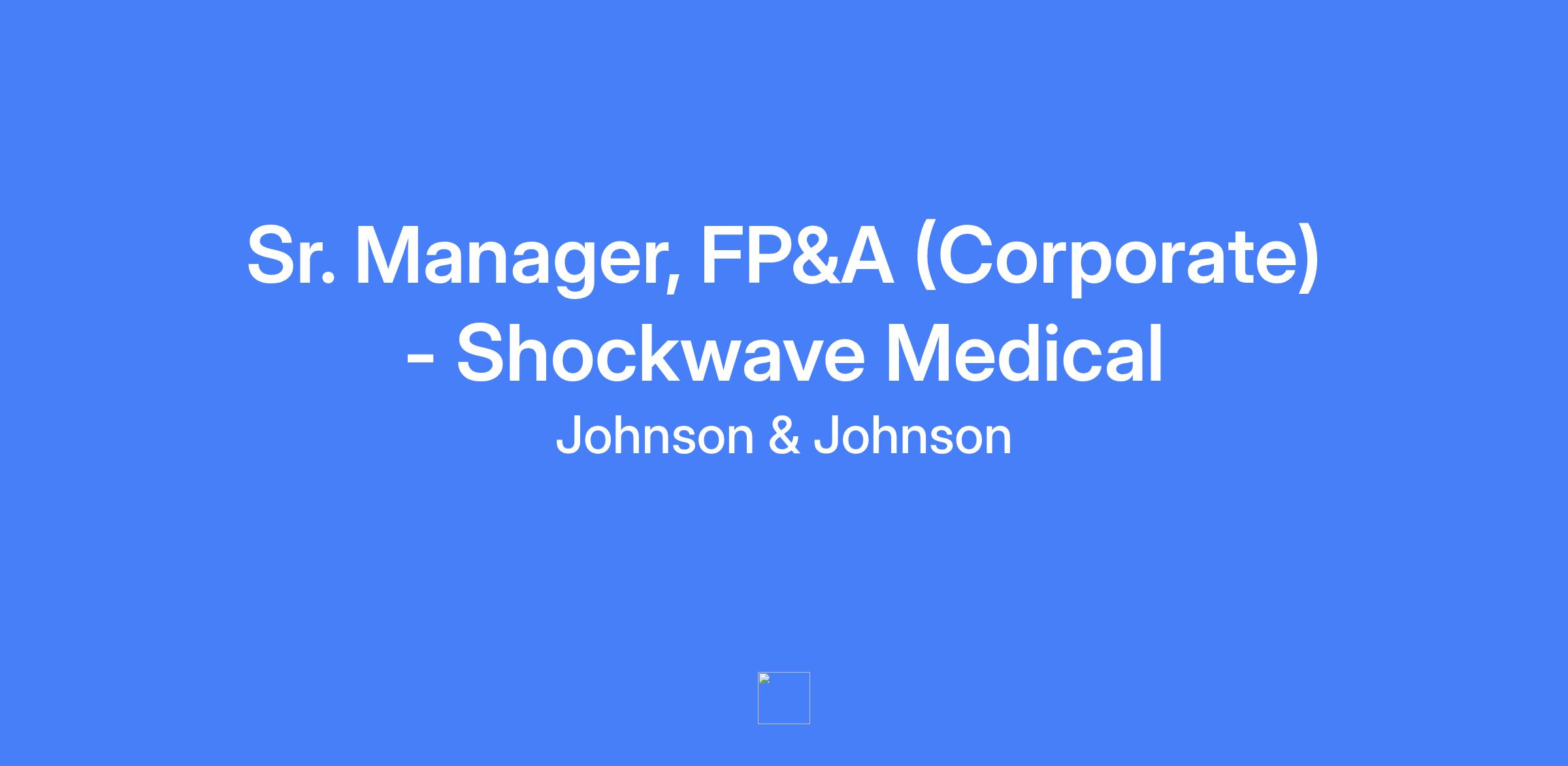 Sr. Manager, FP&A (Corporate) โ Shockwave Medical at Santa Clara, CA. Responsible for corporate consolidation, reporting, and providing strategic financial insight to support executive decision-making for the Shockwave Medical franchise within Johnson & Johnson.