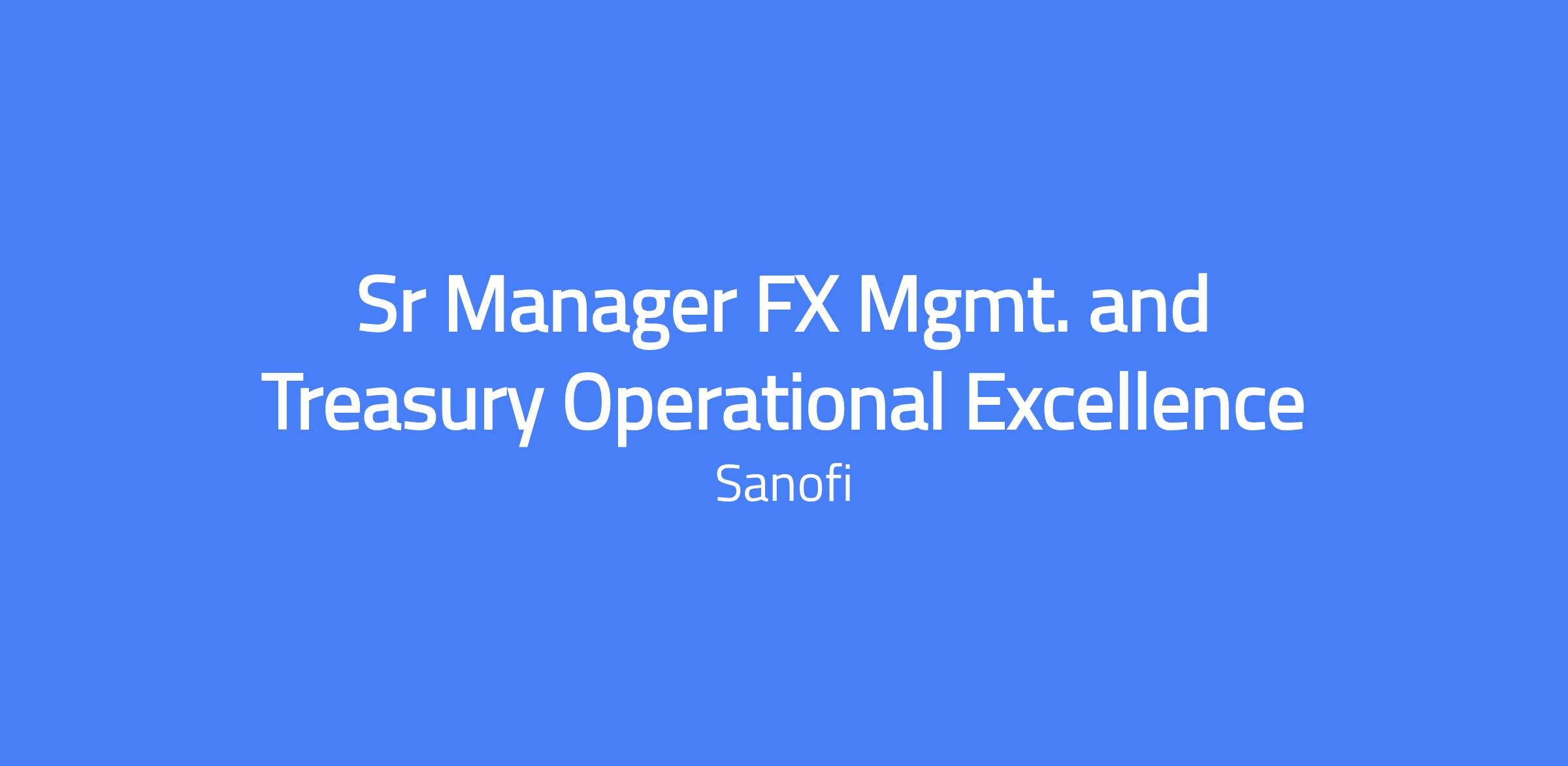 Sr Manager FX Mgmt. and Treasury Operational Excellence