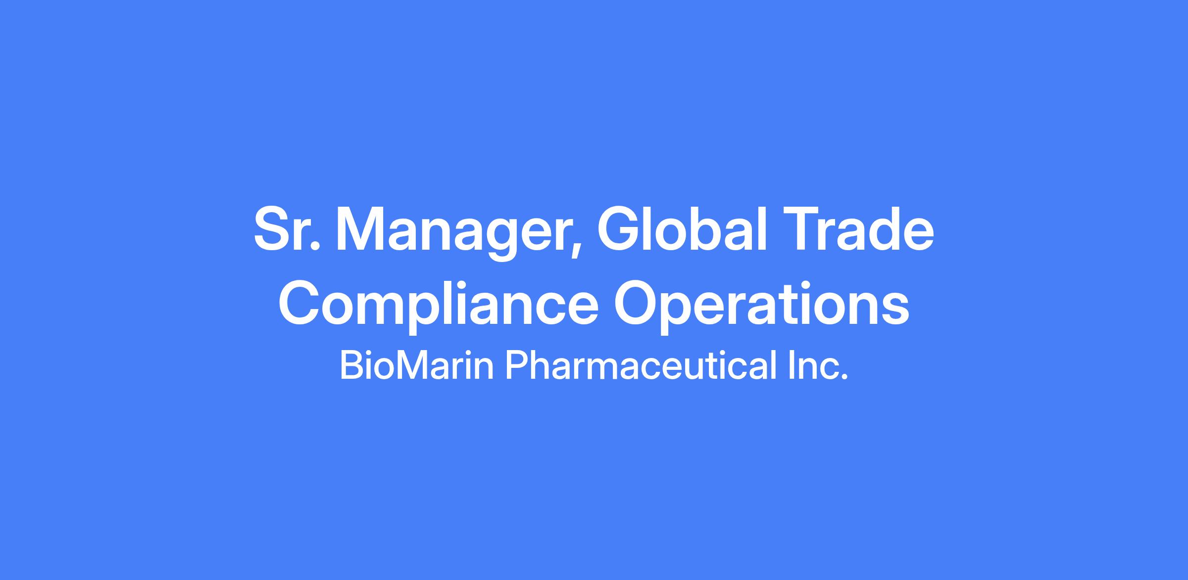 The Global Trade Compliance Operations Senior Manager operates within a center-led Global Supply Chain framework. This position has responsibilities across the clinical, commercial, and development science areas related to Global Trade Compliance (GTC) activities. This role ensures smooth and compliant movement of finished goods, drug product, intermediates, raw materials, and research products across international borders. Note that responsibilities may include all or part of the items below and may evolve to support ongoing business needs.