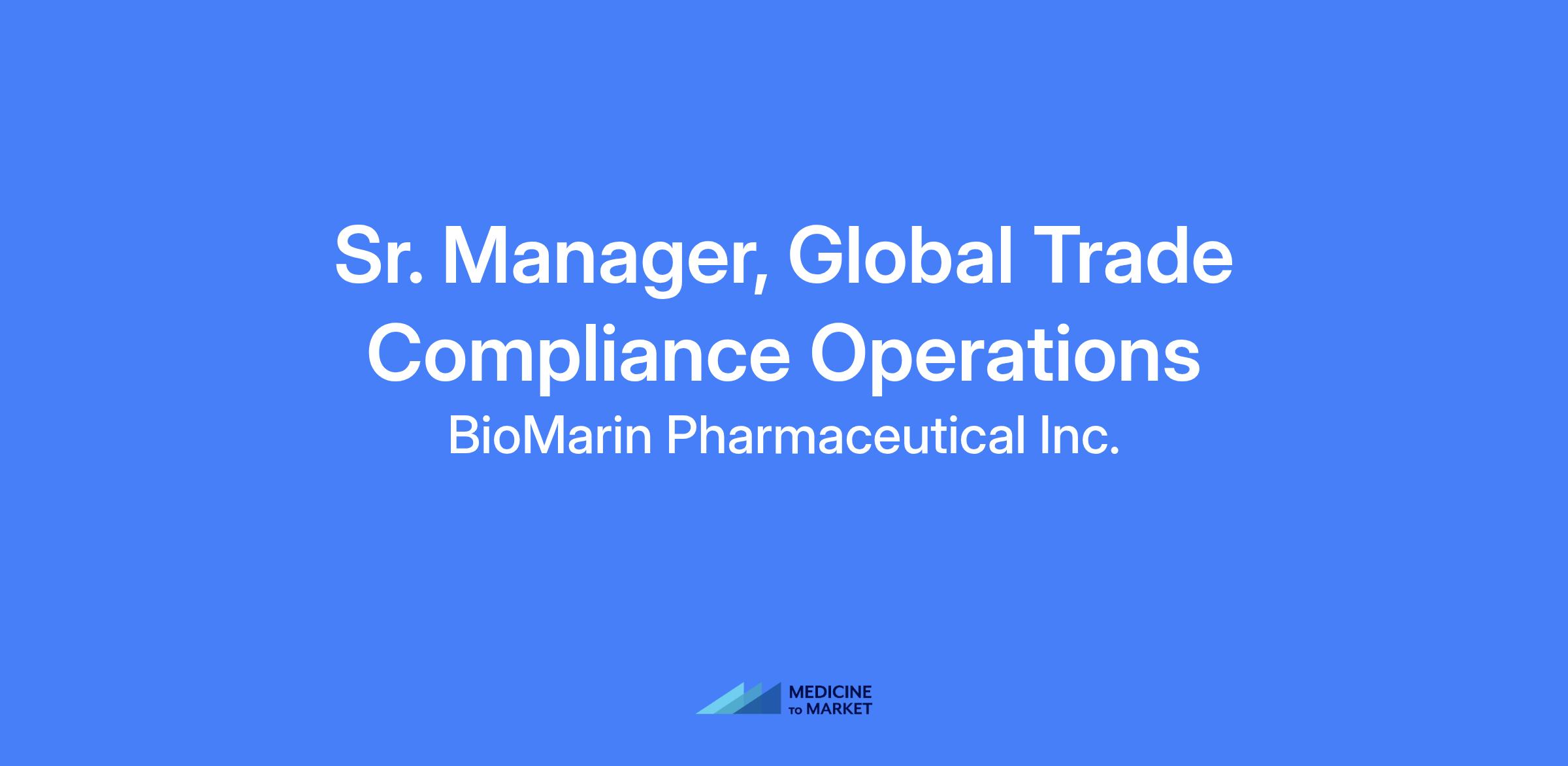 Sr. Manager, Global Trade Compliance Operations. Oversees global trade compliance activities within BioMarin's Global Supply Chain framework, supporting clinical, commercial, and development science areas to ensure smooth and compliant movement of finished goods, drug product, intermediates, raw materials, and research products across international borders.