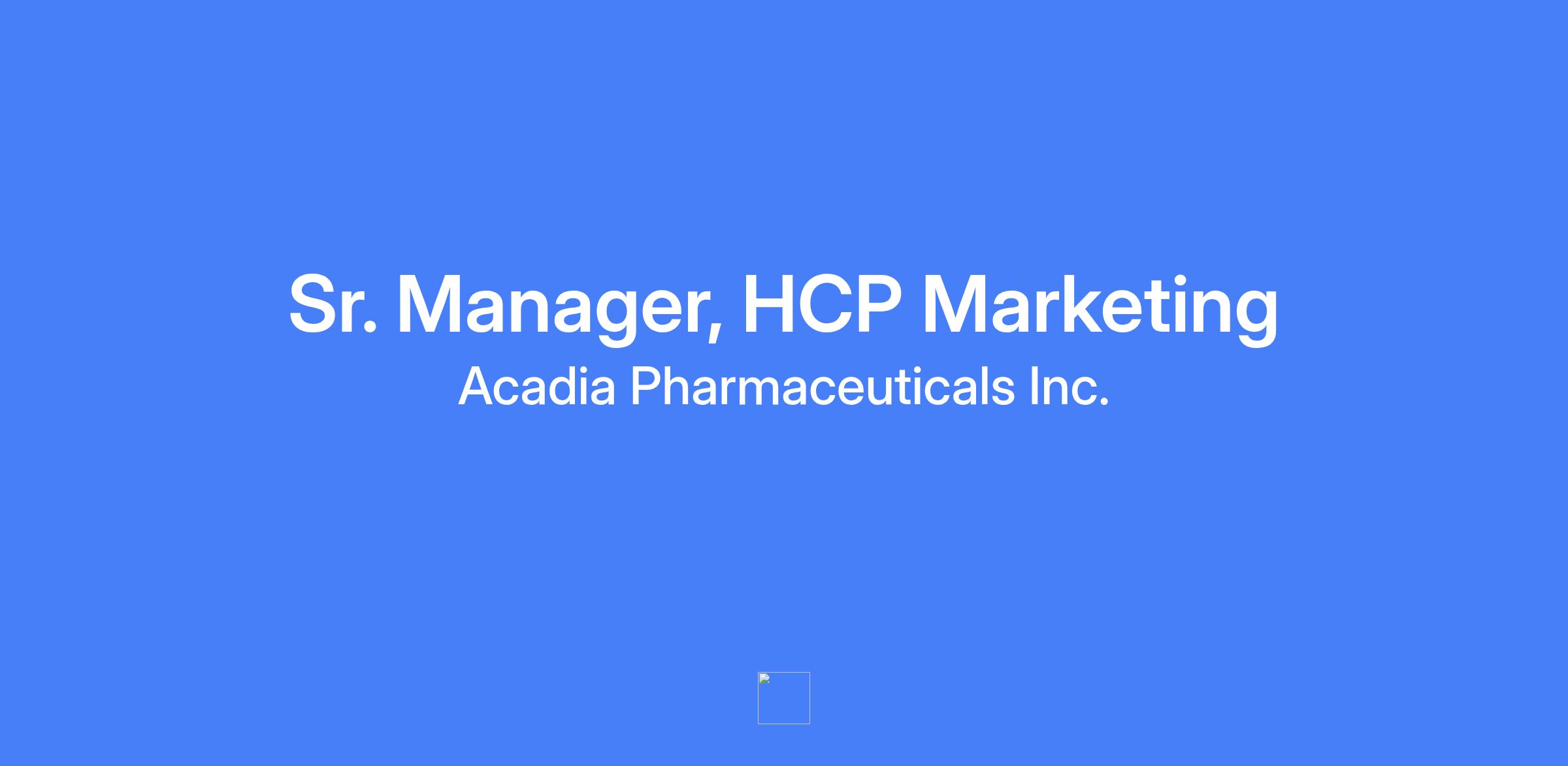 Sr. Manager, HCP Marketing — Based in San Diego, CA. Hybrid model requiring in-office presence three days per week on average. Drives a One Acadia approach to executing Nuplazid’s HCP marketing plan with a focus on commercial excellence and compliance, leading tactical planning and delivery across non-personal promotion, digital platforms, field resources, and congress activities.