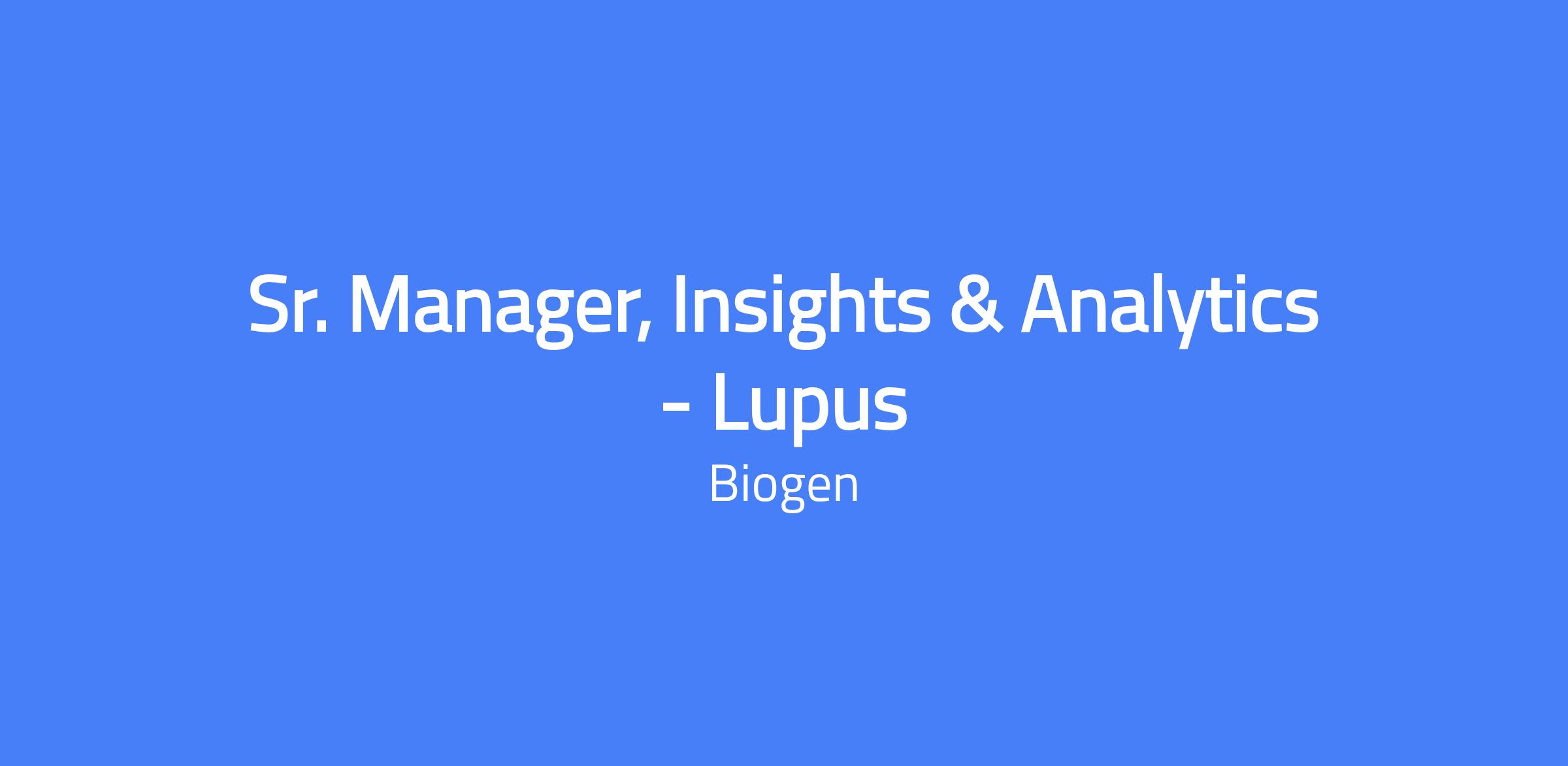The Senior Manager, Insights & Analytics for the US Lupus team will be a proactive strategic thought partner for the US Brand team, responsible for driving actionable insights and a deep understanding of the customer, market, and competitive landscape in both systemic and cutaneous lupus. The role supports the US Lupus brand team by building foundational insights and a go-to-market roadmap for one pipeline asset across multiple indications, enabling informed decisions and competitive positioning. It also involves developing integrated market research and analytic plans to support brand strategy development and launch planning.