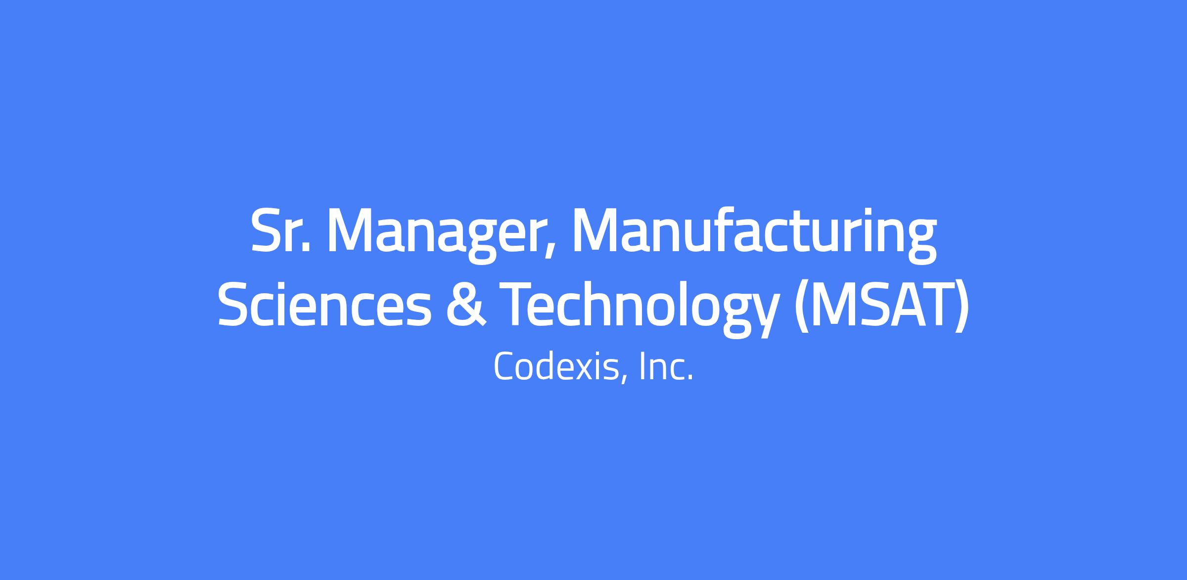 Sr. Manager, Manufacturing Sciences & Technology (MSAT) based in Redwood City, CA. Leads tech transfer of enzyme manufacturing processes into internal manufacturing suites and external partner facilities, provides technical leadership across the product lifecycle, and drives scale-up and continuous process improvements to enhance yield, robustness, and critical quality attributes. The role may be on-site, remote, or hybrid depending on company arrangements.