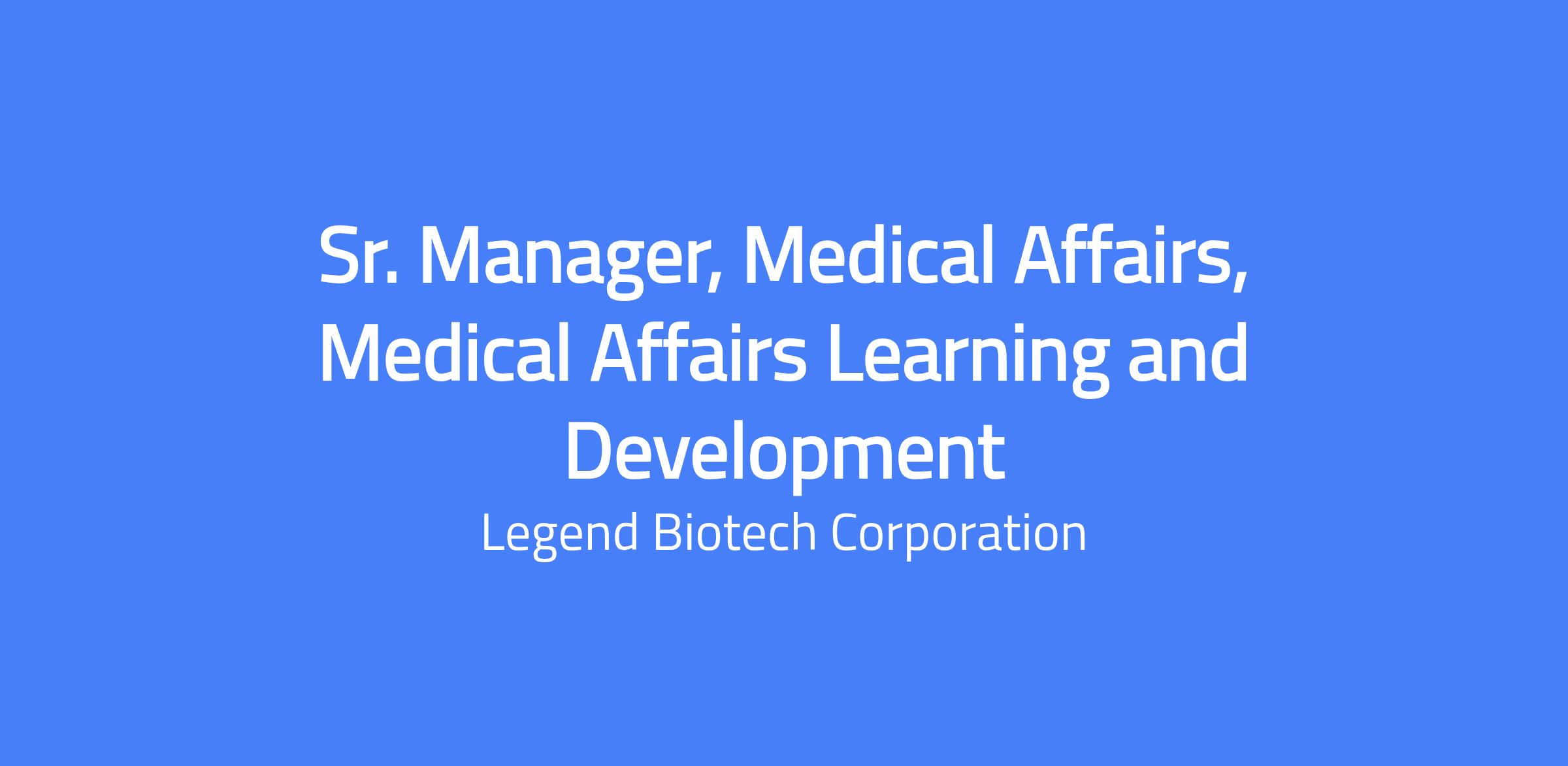 Legend Biotech is seeking a Sr. Manager, Medical Affairs, Medical Affairs Learning and Development as part of the Medical Affairs team based Remotely.