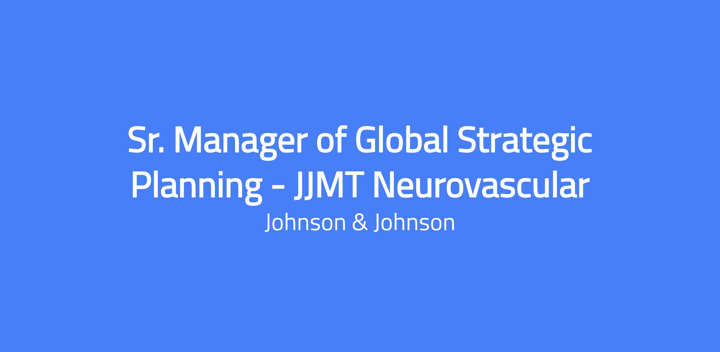 Johnson & Johnson MedTech, Neurovascular, is recruiting a Senior Manager of Global Strategic Planning to join our team. This position is located in Irvine, California and follows a hybrid schedule with on-site presence 2-3 days per week. The role focuses on developing and executing global strategic plans for the Neurovascular business, including market modeling, portfolio strategy, LTSP communications, and pricing strategy to support growth and maximize value.