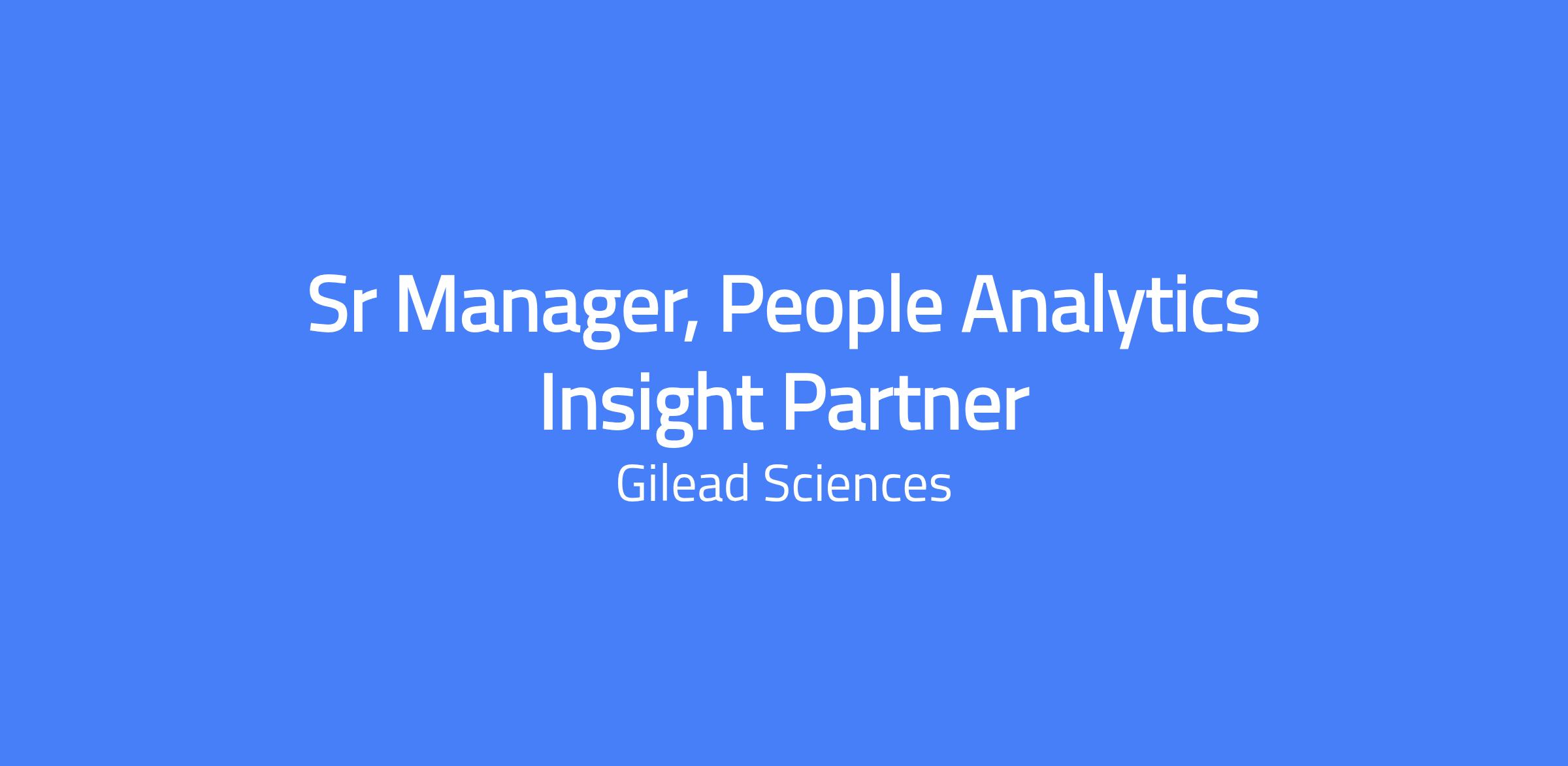 Senior Manager, People Analytics Insight Partner (Foster City, CA)