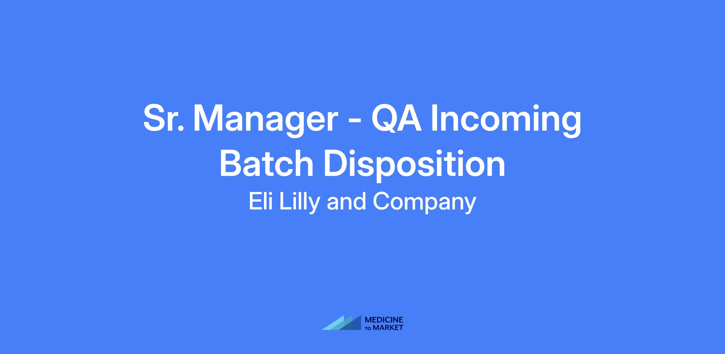 Sr. Manager - QA Incoming Batch Disposition. Responsible for support of the quality disposition of materials, semi-finished and finished goods for the RTP production site, building a strong quality culture, and oversight of ongoing operations, site inspection readiness, and execution.