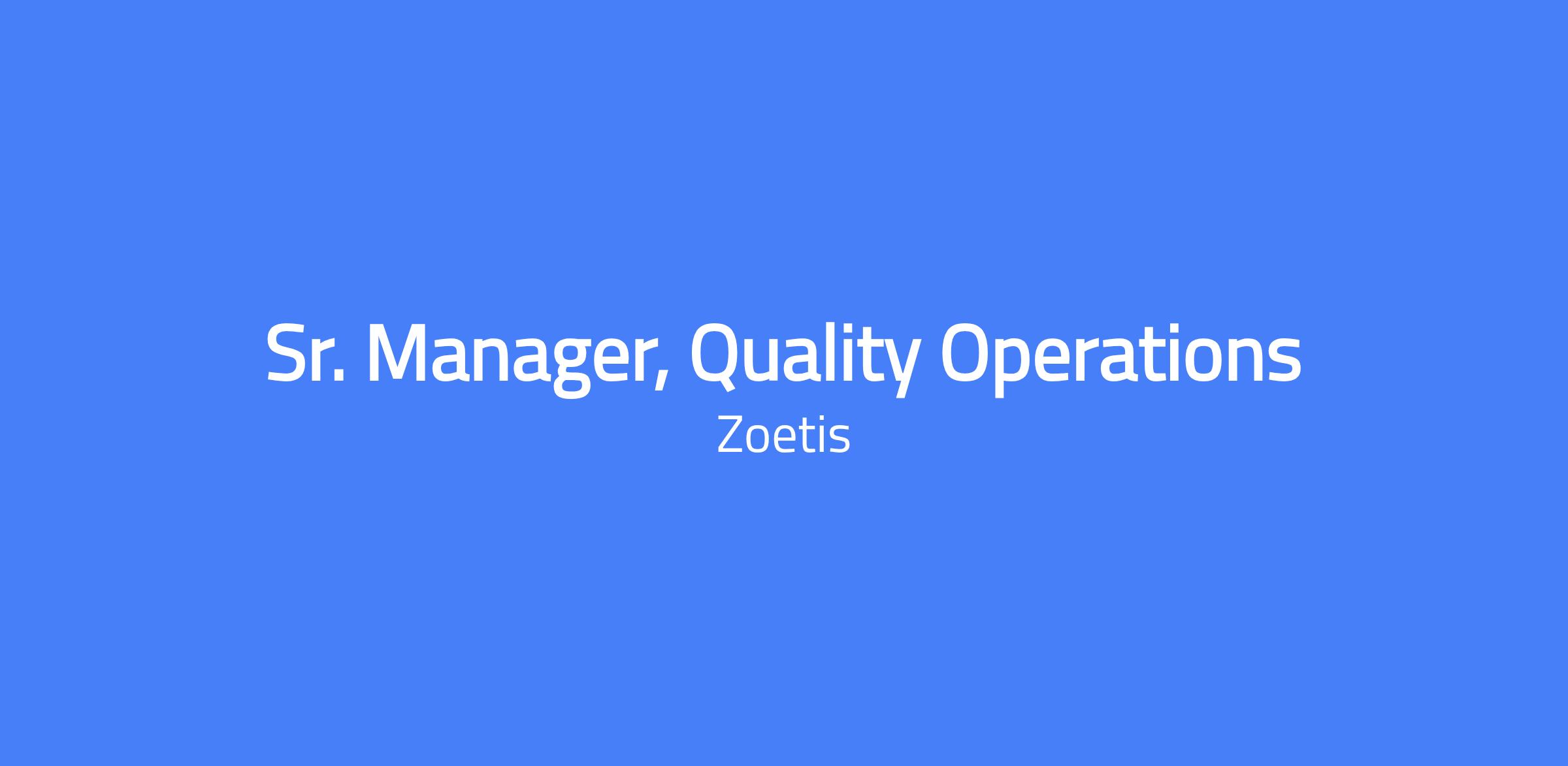 Sr. Manager, Quality Operations