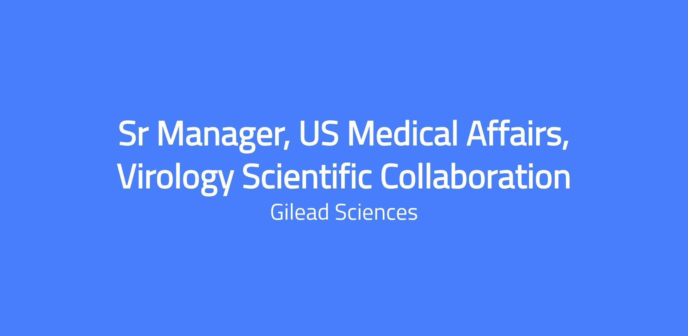 Sr Manager, US Medical Affairs, Virology Scientific Collaboration; serves as the primary contact for US Medical Affairs engagement with external societies and medical-scientific organizations. Acts as a cross-functional partner across USMA Virology with a focus on HIV, HIV Prevention, and Liver Disease. Reports directly to the USMA Virology Scientific Collaboration Sr Director. Position based in Foster City, CA or Parsippany, NJ.