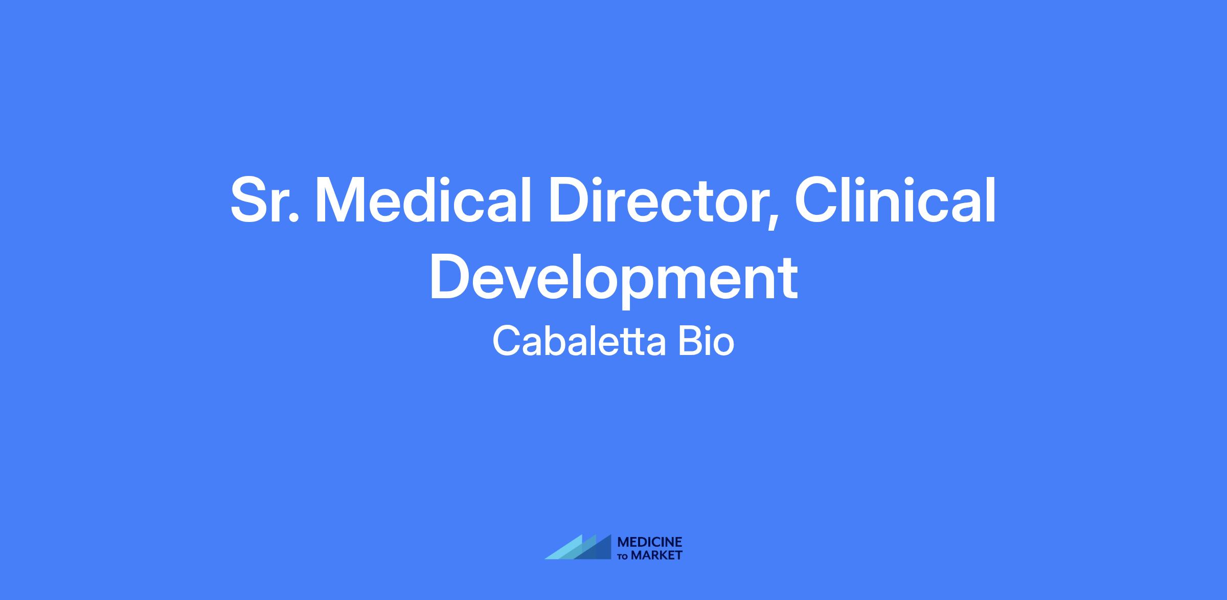 Sr. Medical Director, Clinical Development. This role provides medical oversight and leadership of CabalettaβΓΓ΄s cell therapy programs in autoimmune diseases, collaborating with clinical operations, regulatory, translational research, manufacturing, and quality assurance; liaising with clinical investigators and site personnel; building relationships with external experts; and interacting with Health Authority representatives.