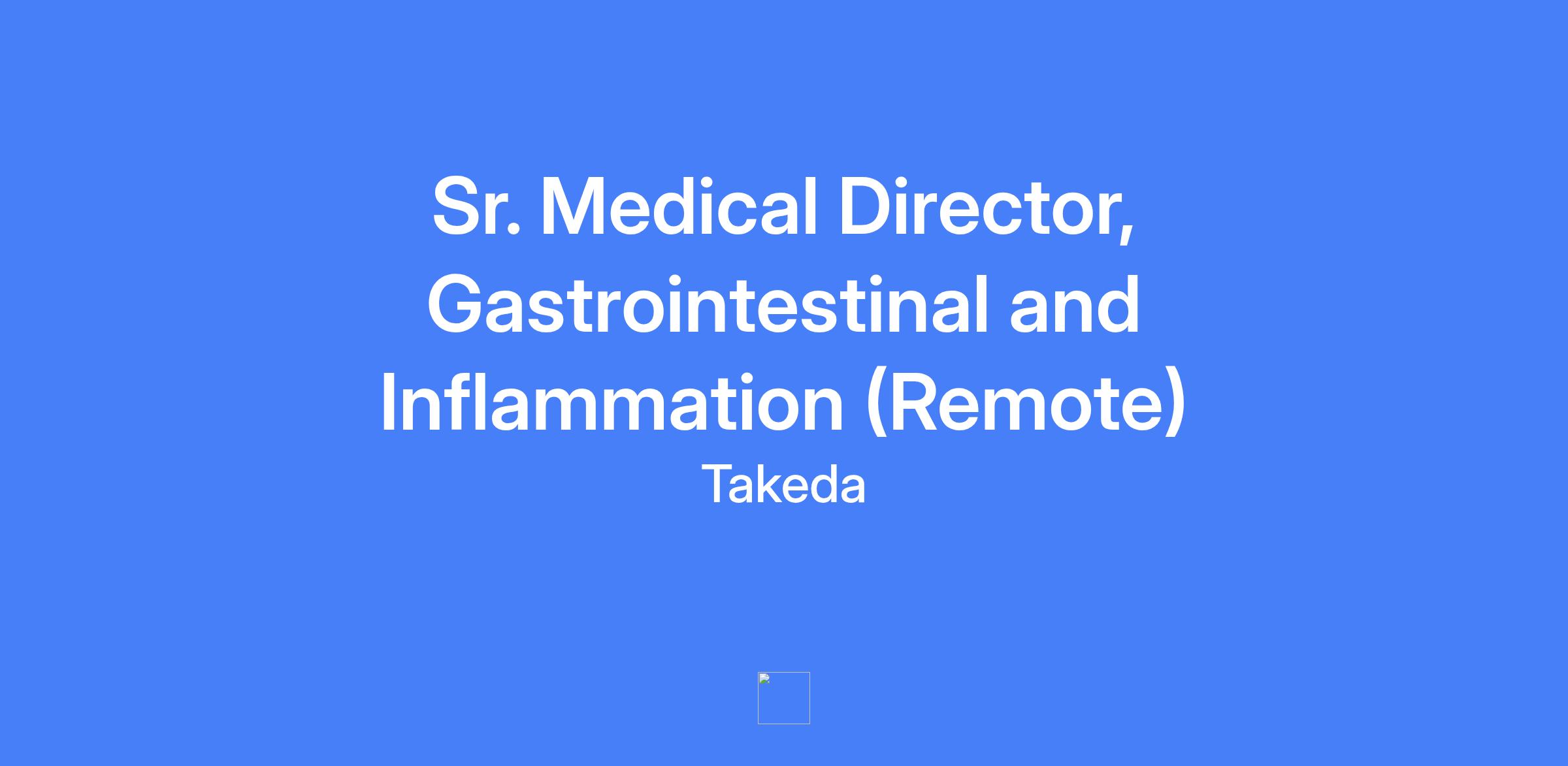 Sr. Medical Director, Gastrointestinal and Inflammation (Remote) at Takeda. Oversees medical safety activities and processes for assigned products, ensuring continuous assessment of safety profiles and benefit-risk of investigational and marketed compounds. Provides strategic, patient-focused leadership for medical safety and supports asset strategies and medical innovation.