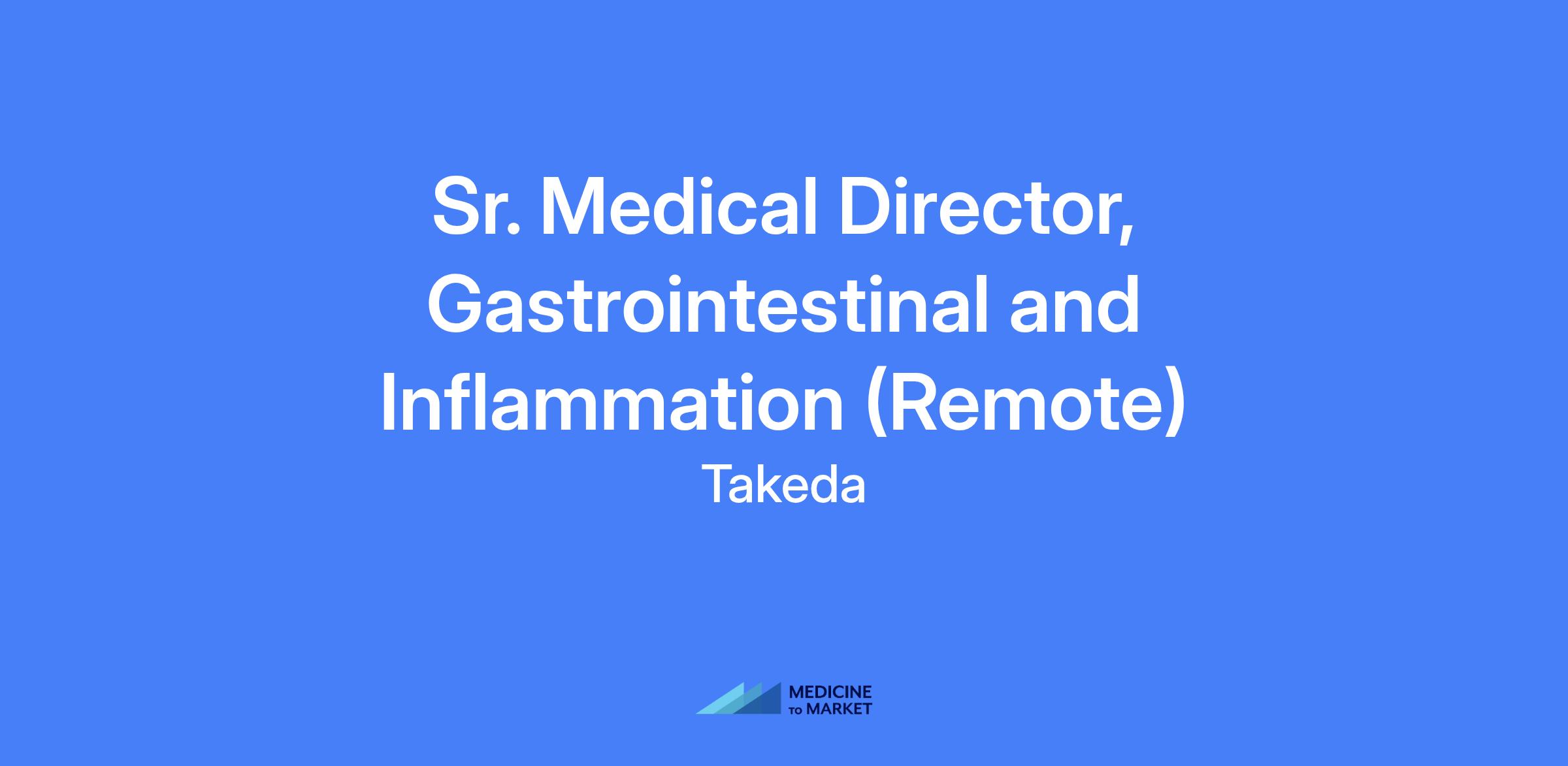 Sr. Medical Director, Gastrointestinal and Inflammation (Remote) at Takeda. Oversees medical safety activities and processes for assigned products, ensuring continuous assessment of safety profiles and benefit-risk of investigational and marketed compounds. Provides strategic, patient-focused leadership for medical safety and supports asset strategies and medical innovation.