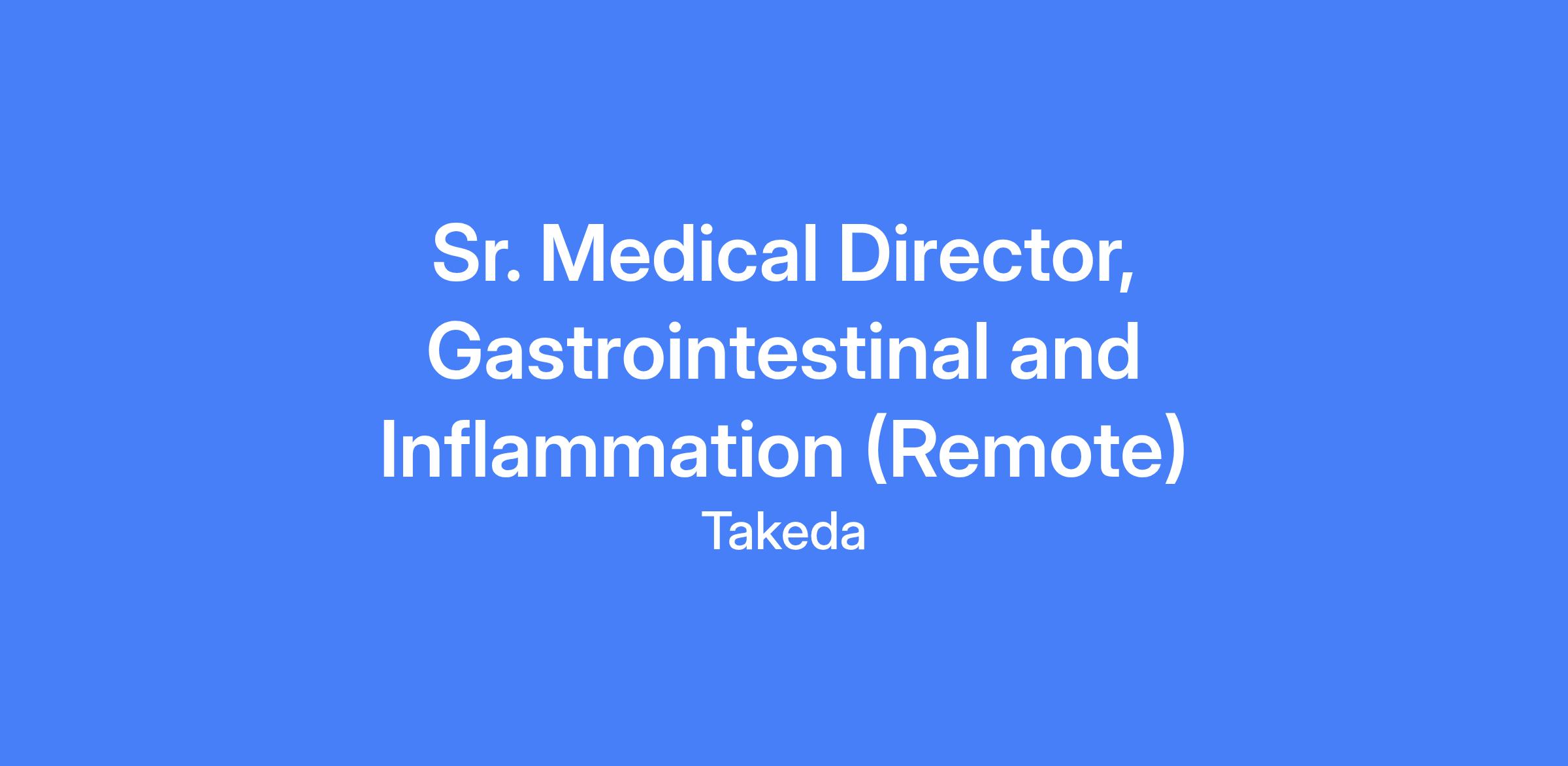 - Supports cross-functional team evaluations in preparation for presentations to the Takeda Safety Board and similar forums. The Senior Medical Director will be a key player in the preparation and presentation of materials to the Takeda Safety Board and similar forums.