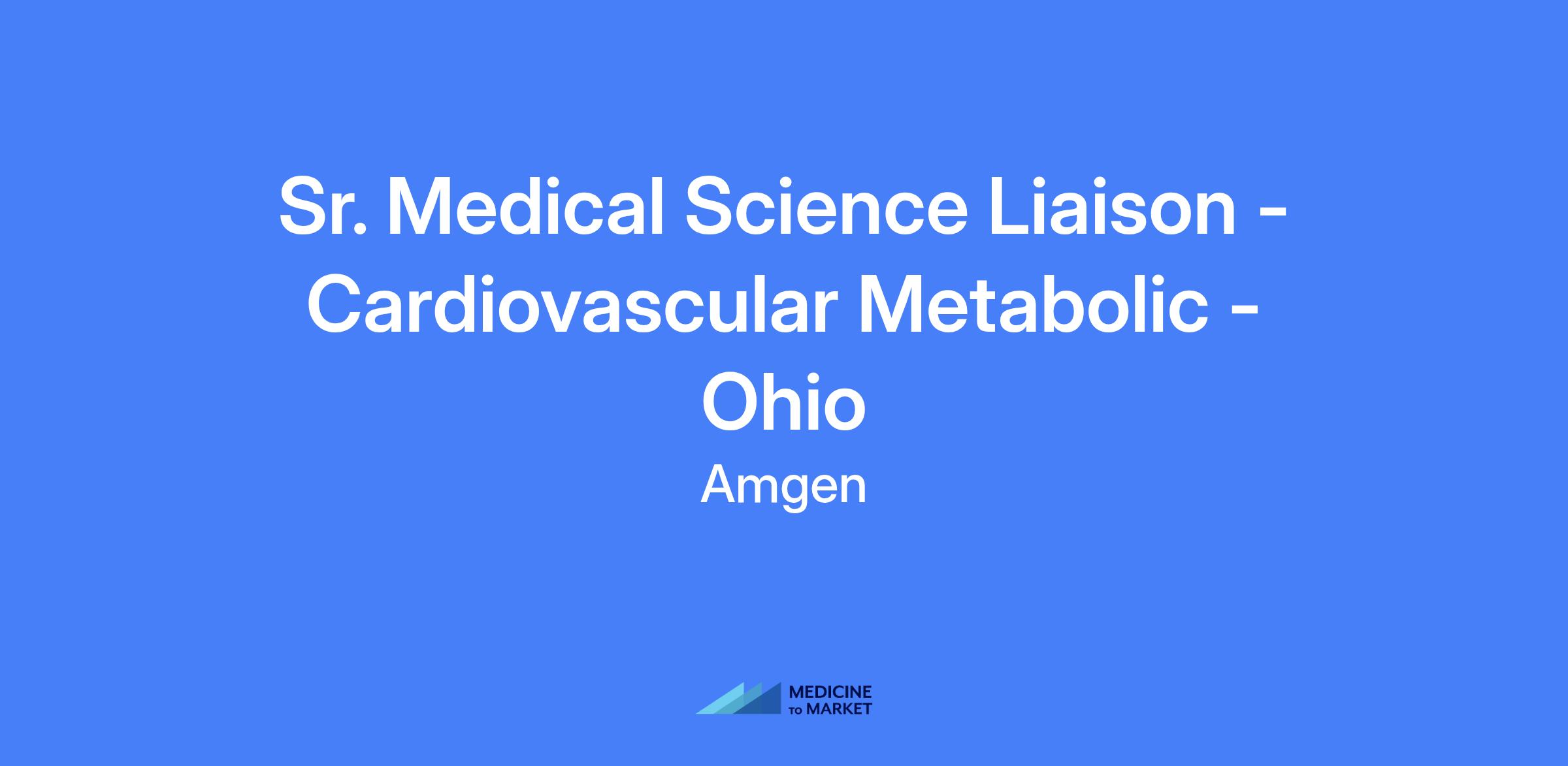 Sr. Medical Science Liaison - Cardiovascular Metabolic, Ohio. Field-based role engaging cardiometabolic stakeholders to advance scientific platform and align with Amgen’s organizational goals.