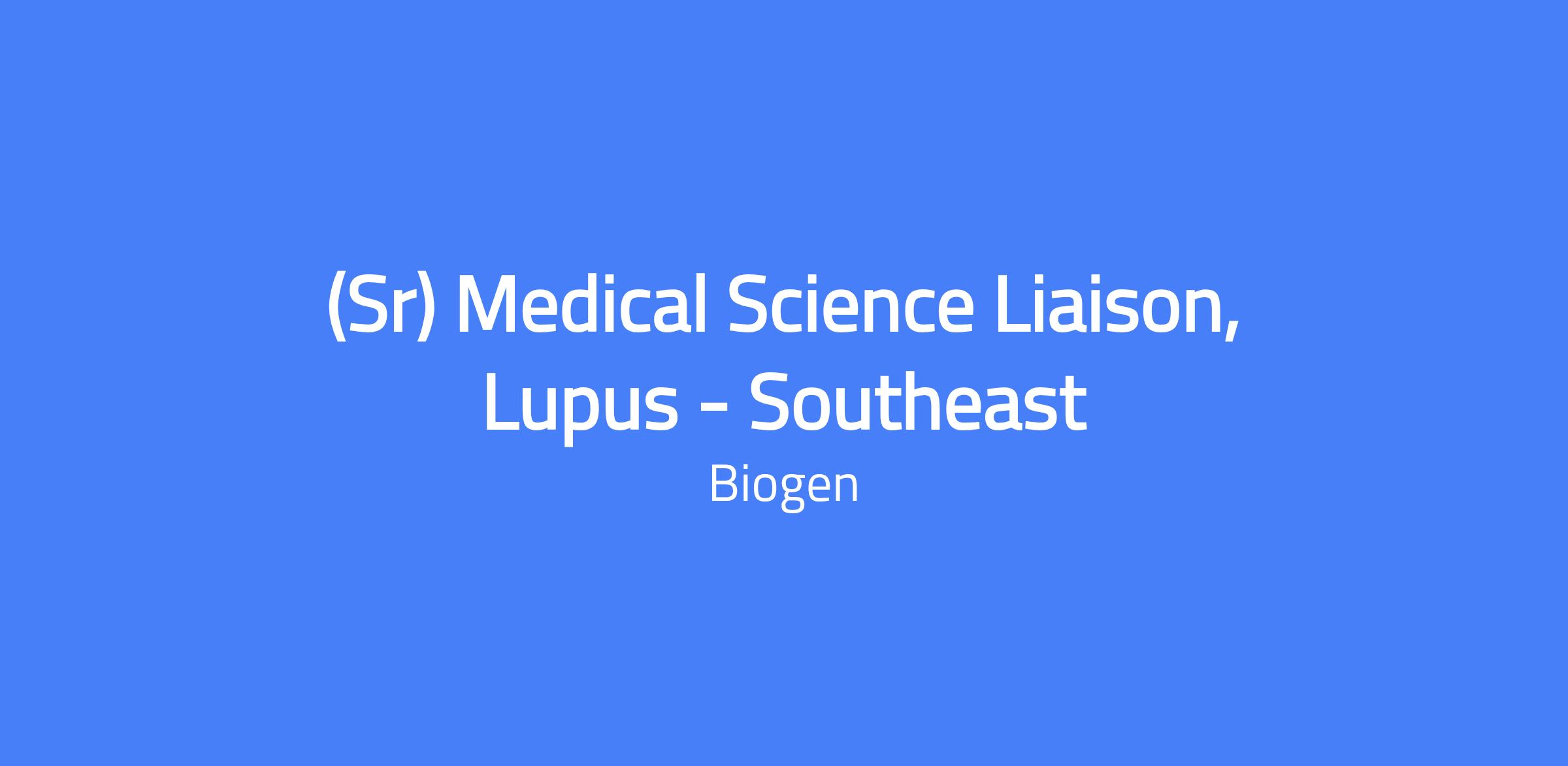 The Senior Medical Science Liaison (MSL) for Lupus in the Southeast is part of US Medical Affairs, partnering with Biogen to inform medical practice across therapeutic areas and pipeline to improve meaningful patient outcomes. The role enables critical stakeholder engagement with Key Medical Experts (KMEs) and other healthcare professionals (HCPs) so they understand the clinical and scientific narrative for Biogen’s therapies. The successful candidate must reside within the territory (FL, AL, MS, LA, AR, TX, OK).