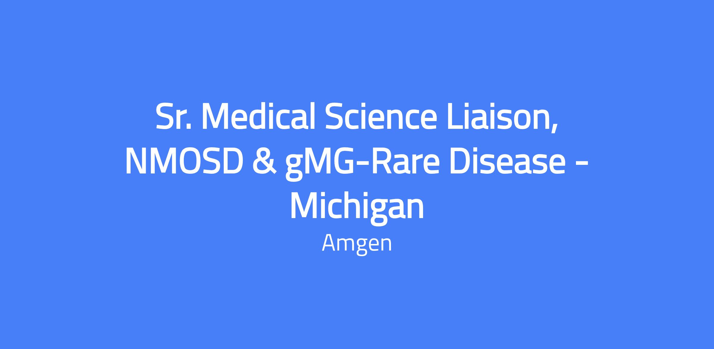 Sr. Medical Science Liaison, NMOSD & gMG-Rare Disease - Michigan