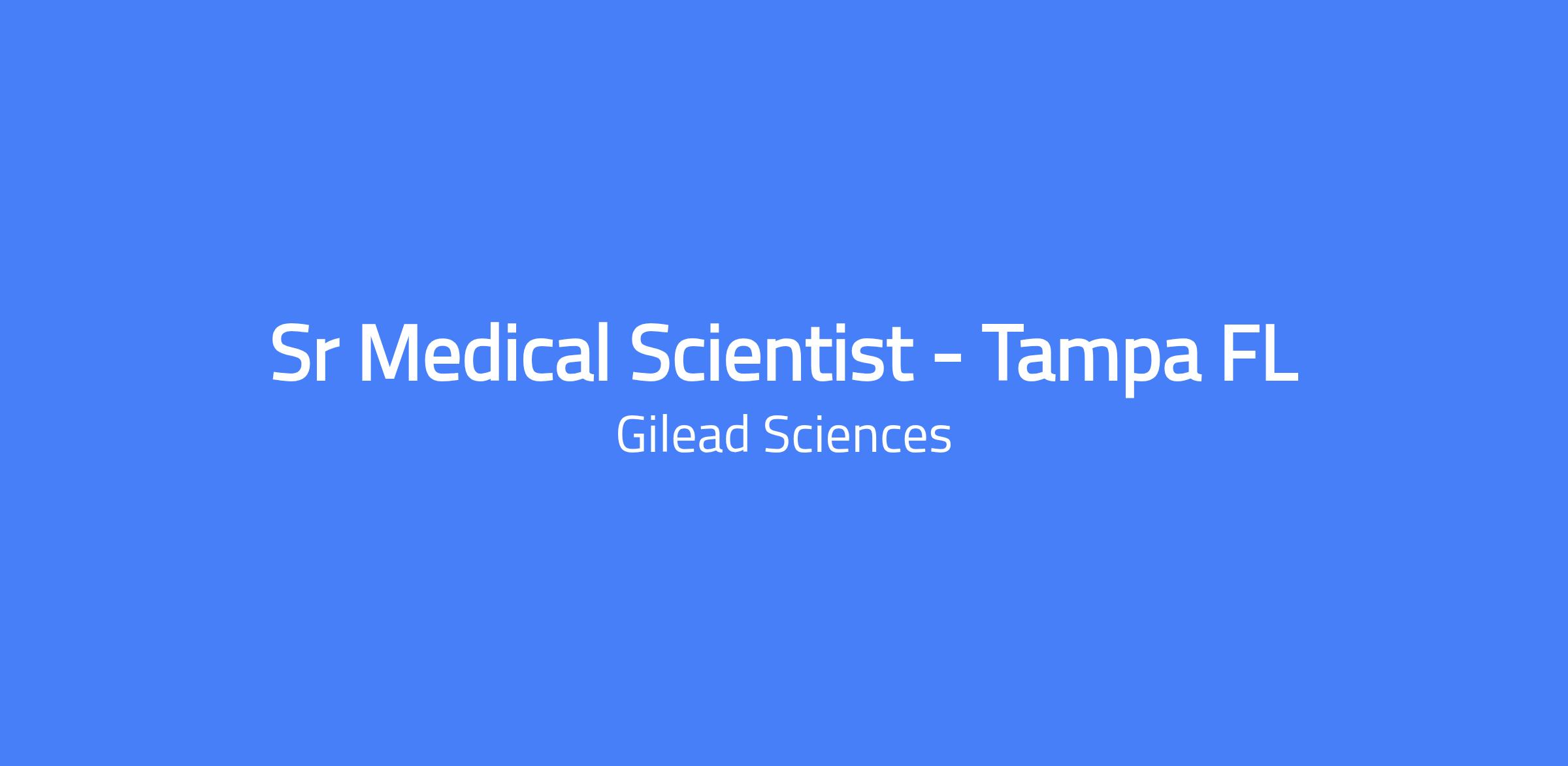 Sr Medical Scientist - Tampa FL is part of the US Medical Affairs team in HIV (Treatment and Prevention). This role will be field-based in the US, with the applicant located in Tampa, FL. The territory includes Tampa, Sarasota, Ft. Myers/Cape Coral, Naples, and Ft. Pierce, and Port Lucie. The MSL reports to the USMA Southeast HIV Field Director and will support field-facing activities related to the USMA Plans of Action and objective-based outcomes for HIV Treatment and HIV Prevention. The incumbent is an experienced, well-organized, results-oriented healthcare professional who will develop ongoing professional relationships related to HIV Treatment and Prevention and provide scientific support to key healthcare decision-makers in public health and academic institutions, along with community and community healthcare providers throughout the assigned geography.