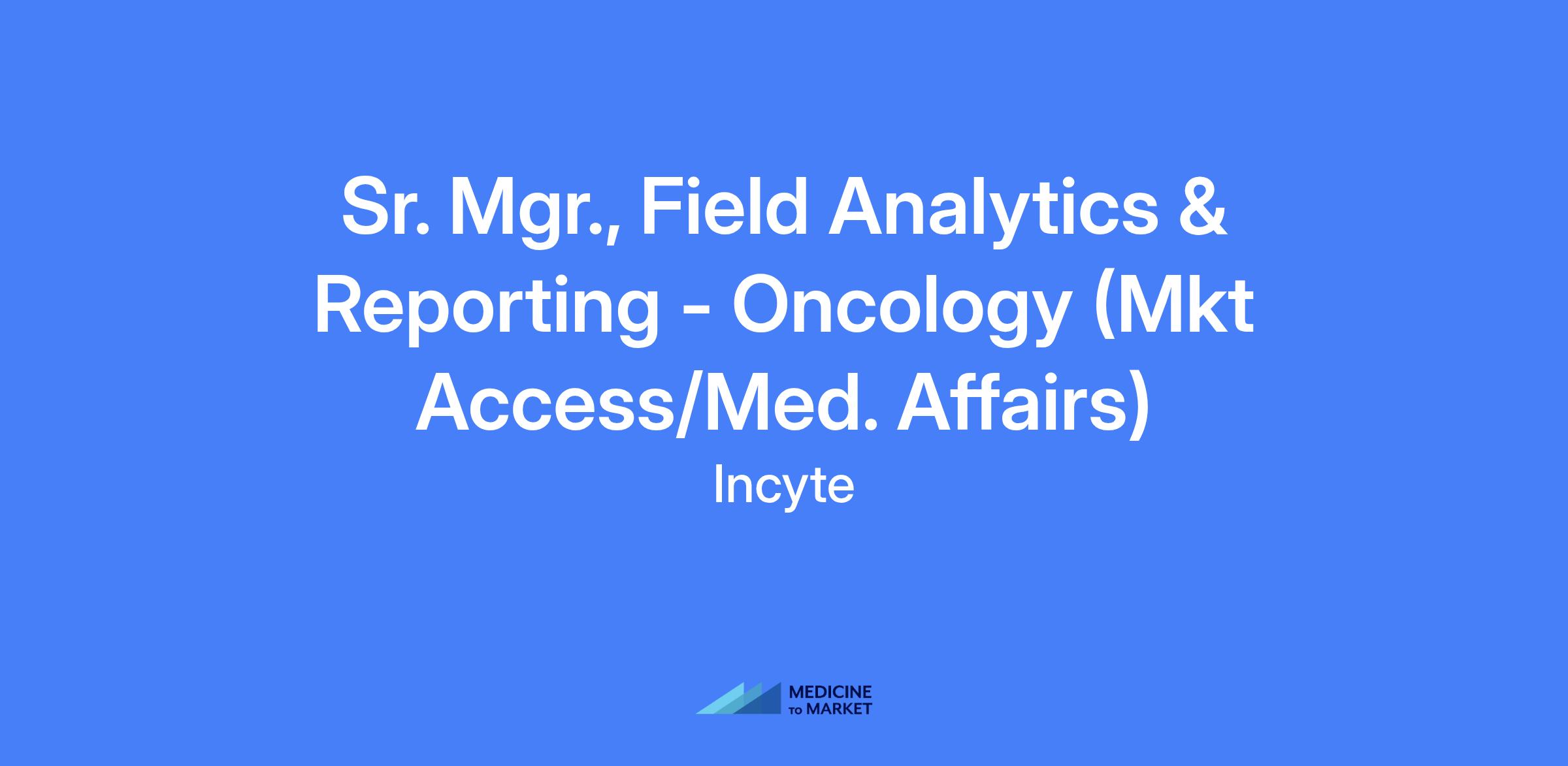 Sr. Mgr., Field Analytics & Reporting - Oncology (Mkt Access/Med. Affairs)