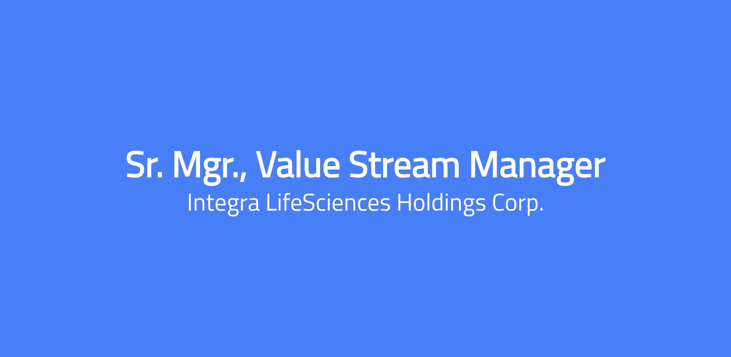 Changing lives. Building Careers. Joining us is a chance to do important work that creates change and shapes the future of healthcare. Thinking differently is what we do best. To us, change equals opportunity. Every day, our colleagues are challenging whatâs possible and making headway to innovate new treatment pathways to advance patient outcomes and set new standards of care. The Sr. Manager, Value Stream Manager is responsible for end-to-end performance of CSS medical device production value stream platform. The responsibilities include acceptance of design transfers, through lifecycle management to final device shipment. He/She will be responsible for implementing strategies and plans to meet short and long-term goals to achieve the highest standards of safety, quality, customer service, and productivity. They will be responsible for all aspects of safety and security, manufacturing, engineering, quality, regulatory, and project management within the value stream as measured by safety, quality, delivery, and cost key performance indicators (KPI's). Ensuring the production of medical products is in compliance with corporate policies, U.S. Food and Drug Administration regulations, ISO 9001, ISO 13485, EU MDR and other applicable regulatory agencies. Ensures the safety of colleagues through effective and continuously improving environmental, health, and safety program engagement. Ensure all team members receive training, and are knowledgeable and compliant regarding safety procedures, policies, permits, practices, PPE, proper housekeeping, and awareness. Initiates and lead accident, near miss, and incident event notifications. Lead, coach, and develop a team of technicians, operators, managers, supervisors, and process engineers. Responsible for managing staffing, training and daily maintenance operations across shifts up to 7 days a week, including attendance, overtime, operational issues, talent management, performance management, development planning and reporting of results.⯠Interviews job candidates, completes performance reviews, and justifies promotions or disciplinary actions (as appropriate). Serve as a member of the site leadership team participating in strategic and tactical planning & execution to ensure site objectives are met. Ensure alignment of value stream objectives with overall site objectives. Foster a culture of colleague engagement thru positive leadership, recognition, accountability, feedback, continuous improvement, and engagement activities Responsible for the teamâs compliance and meeting the quality standards as defined by Integraâs SOPs, GMPs, Global Quality Standards, local and procedures, where applicable. Partner with Quality Assurance and Regulatory Affairs to ensure full compliance with applicable standards (FDA QSR, GMP, ISO 13485, etc). Initiate, develop and implement engineering studies and IQ/OQ/PQ/TMV validations for equipment and processes to meet the demands of new product introductions and current manufacturing operations.⯠Coordinate specific efforts as required by the project team. Includes such tasks as development of manufacturing process requirements, specifications, Failure Mode Effects Analysis (FMEA), validations, Engineering Change Requests/Orders (ECR/ECO) and Engineering Drawings. Ensures investigations/CAPAs/nonconformances identify root cause, are appropriately corrected with sustainable remediations. Leverage data/tools/techniques to identify root causes and implement sustainable corrective actions. Ensure training and process documentation requirements are consistently met. Partner with supplier quality and procurement to ensure supplier issues and changes are addressed appropriately within quality management system in a timely manner. Coach/mentor lean six-sigma manufacturing initiatives (5S, Kaizen, Value Stream Mapping, Kanban, Standard Work. OEE) to reduce waste and improve flow across the value stream. Ensure teams delivering measurable improvements in yield, throughput, and cycle time across the value streams in line with KPI targets. Partner with the cross-functional teams to meet customer fulfillment needs as well as lead process optimization, yield improvement, six sigma process excellence and lean projects. Monitor process capability and performance metrics (CoPQ, Cpk, yield, run time, downtime, scrap). Develop process/project improvement and mitigation projects to improve capability and performance. Develops, reviews, approves, and accountable for all financial budgets within the value stream, including headcount, expense, capital, and inventory. Ensure value stream cost of goods sold (COGS) results are in line with financial targets by ensuring bill-of-materials (BOMS), routers, and process instructions align to costs. Work cross-functionally and collaboratively to solve operational issues. Interacts with senior management on matters concerning several job areas, departments, and/or customers to accept new concepts, practices and approaches as well as with senior level vendor or customer representatives concerning projects & operational decisions. Complete other job-related duties as assigned. Skills & Competencies Engineering or Technical degree with 8+ years of experience leading a team (direct reports or projects) or equivalent education and years of management experience OR Master degree with 5+ years of experience leading a team (direct reports or projects) or equivalent education and years of management experience Demonstrate excellent organizational and english communication skills (oral & written) Financial acumen relating to operations profit & loss (P&L) items Proficiency in MS Office Suite and statistical analysis software. Experience in regulated environment; medical device or pharma preferred Familiarity with health, safety, and environmental regulations related to manufacturing. Experience in regulated environment; medical device or pharma preferred Self-motivated team player with ability to work in