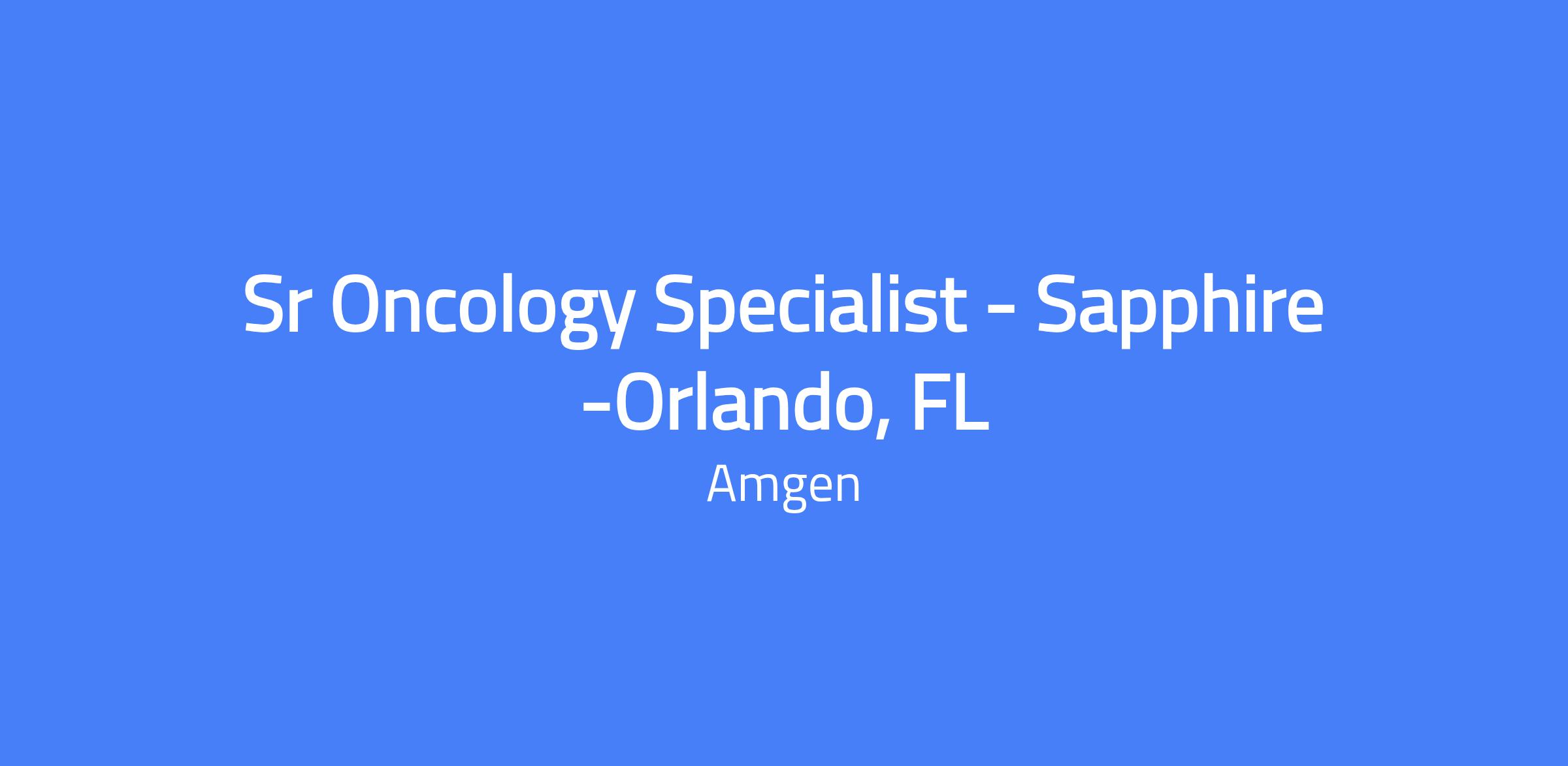 Senior Oncology Specialist in the Orlando, FL region (territory includes Orlando, Port St Lucie, West Palm Beach, Sanford, Apopka). Relocation is not offered.