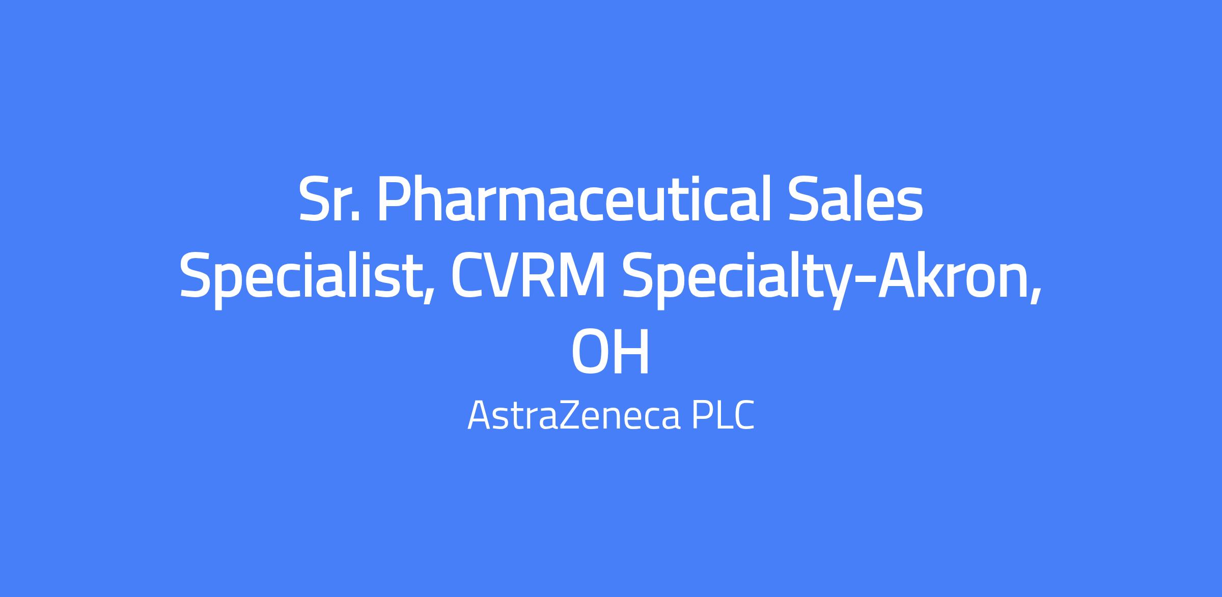 Sr. Pharmaceutical Sales Specialist, CVRM Specialty-Akron, OH