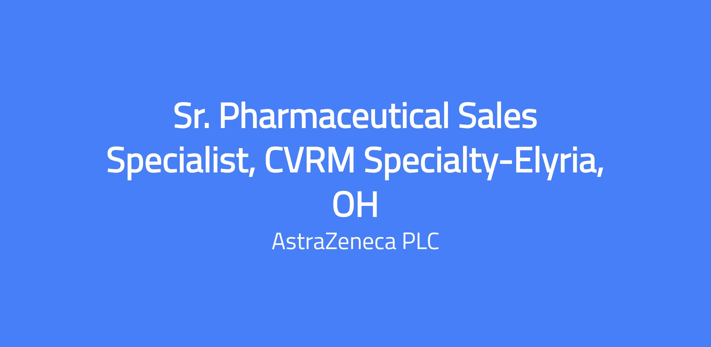 Sr. Pharmaceutical Sales Specialist, CVRM Specialty-Elyria, OH
