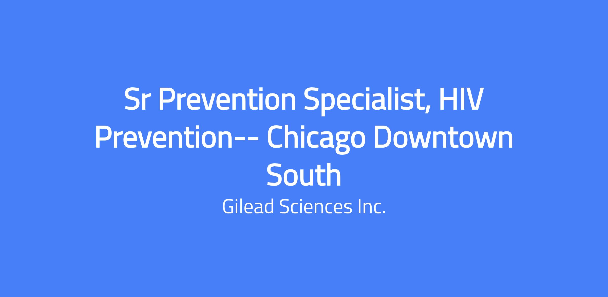 At Gilead, weâre creating a healthier world for all people. For more than 35 years, weâve tackled diseases such as HIV, viral hepatitis, COVID-19 and cancer â working relentlessly to develop therapies that help improve lives and to ensure access to these therapies across the globe. We continue to fight against the worldâs biggest health challenges, and our mission requires collaboration, determination and a relentless drive to make a difference. Every member of Gileadâs team plays a critical role in the discovery and development of life-changing scientific innovations. Our employees are our greatest asset as we work to achieve our bold ambitions, and weâre looking for the next wave of passionate and ambitious people ready to make a direct impact. We believe every employee deserves a great leader. People Leaders are the cornerstone to the employee experience at Gilead and Kite. As a people leader now or in the future, you are the key driver in evolving our culture and creating an environment where every employee feels included, developed and empowered to fulfil their aspirations. Join Gilead and help create possible, together. Job Description Gilead's mission is to discover, develop, and deliver therapies that will improve the lives of patients with life-threatening illnesses worldwide. As a Senior Therapeutic/Prevention Specialist within Gilead's â HIV Prevention division you will represent Gilead's products and services to a defined customer base. Your focus will be on generating and growing sales by consistently achieving or exceeding sales targets within a specific geographic area. This role emphasizes a comprehensive account management approach, engaging healthcare practices through in-person representation, face-to-face meetings, and strategic partnerships. You will establish strong working relationships with healthcare providers and deliver timely disease awareness information, clinical updates, and education on healthcare changes. The ability to distill complex clinical concepts into easily understood messages tailored to diverse audiences is essential. Success in this role depends on strong presentation and communication skills and a proven track record of effectively interacting with healthcare professionals. This unique opportunity supports the Chicago Downtown South Territory. Key Responsibilities: Account Management & Sales Strategy: Build strong relationships and engage healthcare providers across various touchpoints, ensuring a holistic understanding of their needs and maximizing the impact of Gilead's products. Develop and execute a comprehensive territory business plan that meets customer needs and achieves sales goals. Continuously monitor sales progress, adjusting strategies as necessary to meet and exceed targets. Product & Disease State Expertise: Maintain a deep understanding of Gilead's products, competitive products, and the complexities associated with the therapeutic areaâs disease state. Actively promote the appropriate use of Gilead products to healthcare professionals, adhering to Corporate, PhRMA, and OIG guidelines. Collaboration & Teamwork: Partner effectively with local cross-functional colleagues (field reimbursement managers, medical scientists and other field team members) to ensure a seamless customer experience through access, acquisition, administration and operational support with Gilead products Collaborate externally with healthcare organizations and partner companies, including co-promotion efforts, to enhance product reach and drive sales results. Demonstrate the ability to build and maintain strong internal and external working relationships, ensuring seamless collaboration across departments and organizations. Leadership & Compliance: Model and uphold Gilead's compliance standards and ethical behavior, demonstrating peer leadership within the team. Ensure adherence to regulatory agency, state, federal, and company policies, procedures, and business ethics. This includes timely reporting of adverse events to Gilead's Drug Safety and Public Health department. Ensures all department personnel are fully informed of and in compliance with Gilead commercial compliance policy, all applicable federal and state laws and guidance relating to product promotion and information dissemination, including, but not limited to, the Federal Food, Drug, and Cosmetic Act, the Food and Drug Administration's implementing regulations, the Federal Anti-Kickback Statute, the False Claims Act, PhRMA, Corporate Code of Business Conduct and the Office of the Inspector General's Compliance Program Guidance for Pharmaceutical Manufacturers Customer Engagement & Reporting: Leverage advanced influencing and relationship skills to drive sales outcomes Build solid relationships and establish long-term partnerships with healthcare providers. Perform all required administrative tasks, including reporting call activity and customer information in the designated systems, submitting expenses, and managing the territory budget. Continuous Learning & Development: Exhibit a passion for learning and retaining technical and scientific product information, staying updated on industry trends and changes in the therapeutic area. Demonstrate a self-motivated drive to surpass personal goals and consistently exceed performance standards while working autonomously. Experience in selling a Buy and Bill product with proven sales success Inclusion & Diversity Commitment: Actively contribute to Gilead's ongoing Inclusion & Diversity efforts, fostering an inclusive environment within the team and the broader organization. Skills and Competencies Needed: Advanced Communication Skills: Effectively conveying complex clinical information to diverse audiences. Sales Acumen: Proven track record of achieving or exceeding sales targets in a competitive pharmaceutical environment. Technical & Scientific Proficiency: Strong understanding of the therapeutic area, including disease states, treatment pro
