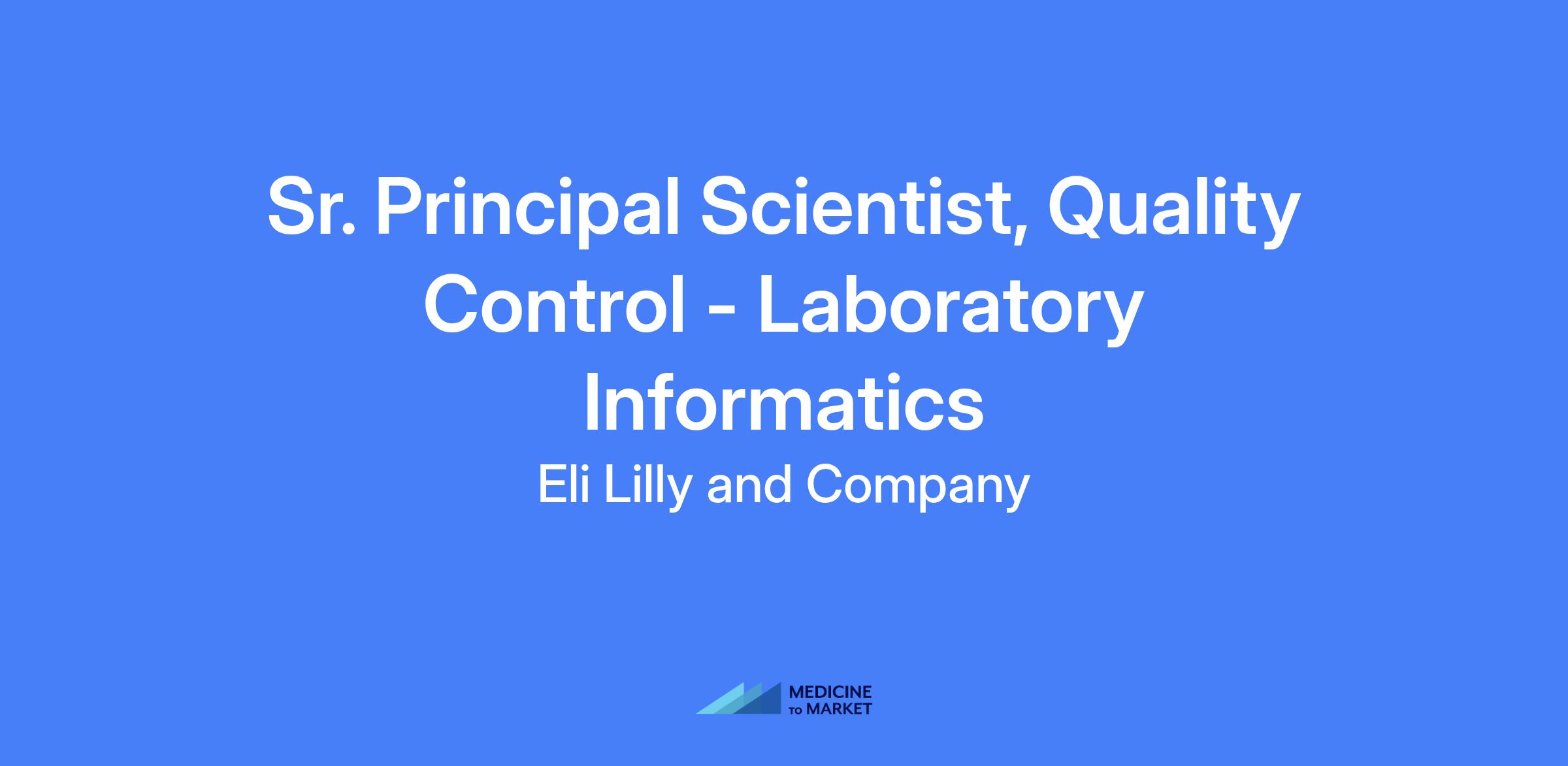 Sr. Principal Scientist, Quality Control – Laboratory Informatics. Serves as a business representative for laboratory IT systems, mentoring peers in lab systems, and supporting regulatory audits, management review of the laboratory Quality System, laboratory metrics, and laboratory documentation.