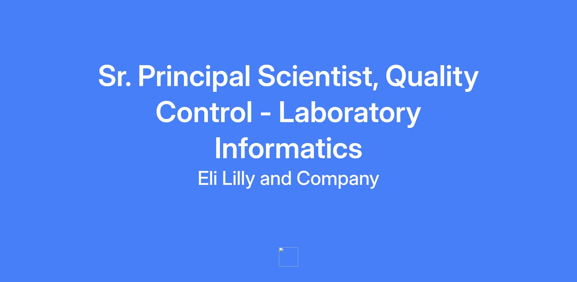 Sr. Principal Scientist, Quality Control – Laboratory Informatics. Serves as a business representative for laboratory IT systems, mentoring peers in lab systems, and supporting regulatory audits, management review of the laboratory Quality System, laboratory metrics, and laboratory documentation.