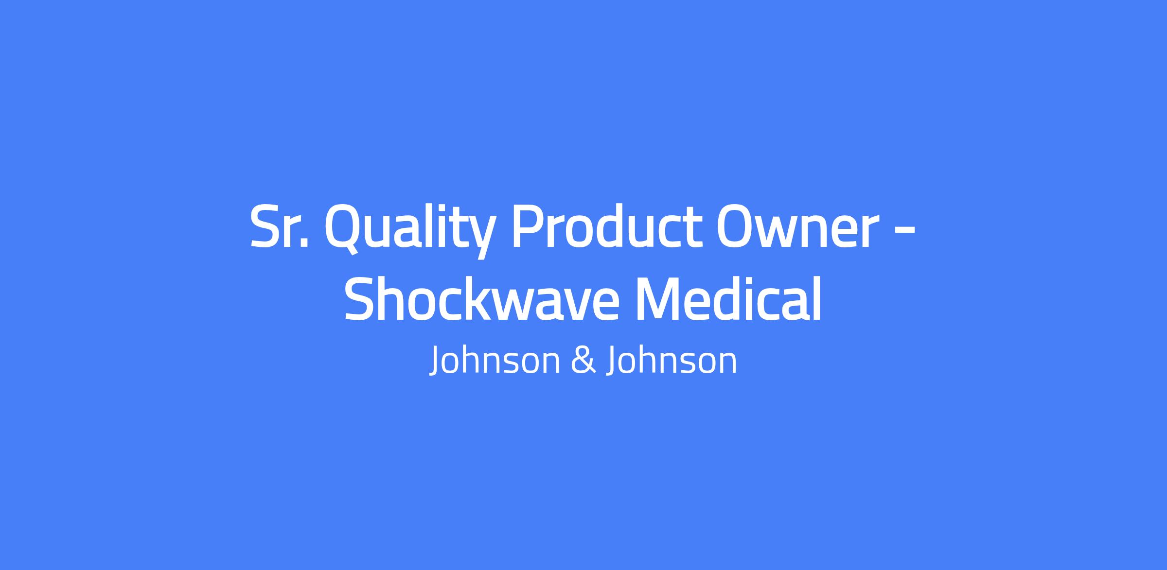 Senior Quality Product Owner for Shockwave Medical, located in Santa Clara, CA. You will support and optimize quality application systems in manufacturing and product development, acting as the liaison between business stakeholders, IT, and engineering to ensure quality processes support business goals and enable product innovation. This role operates in regulated medical-device environments to uphold standards while enabling the development and commercialization of Intravascular Lithotripsy (IVL) to treat complex calcified cardiovascular disease.