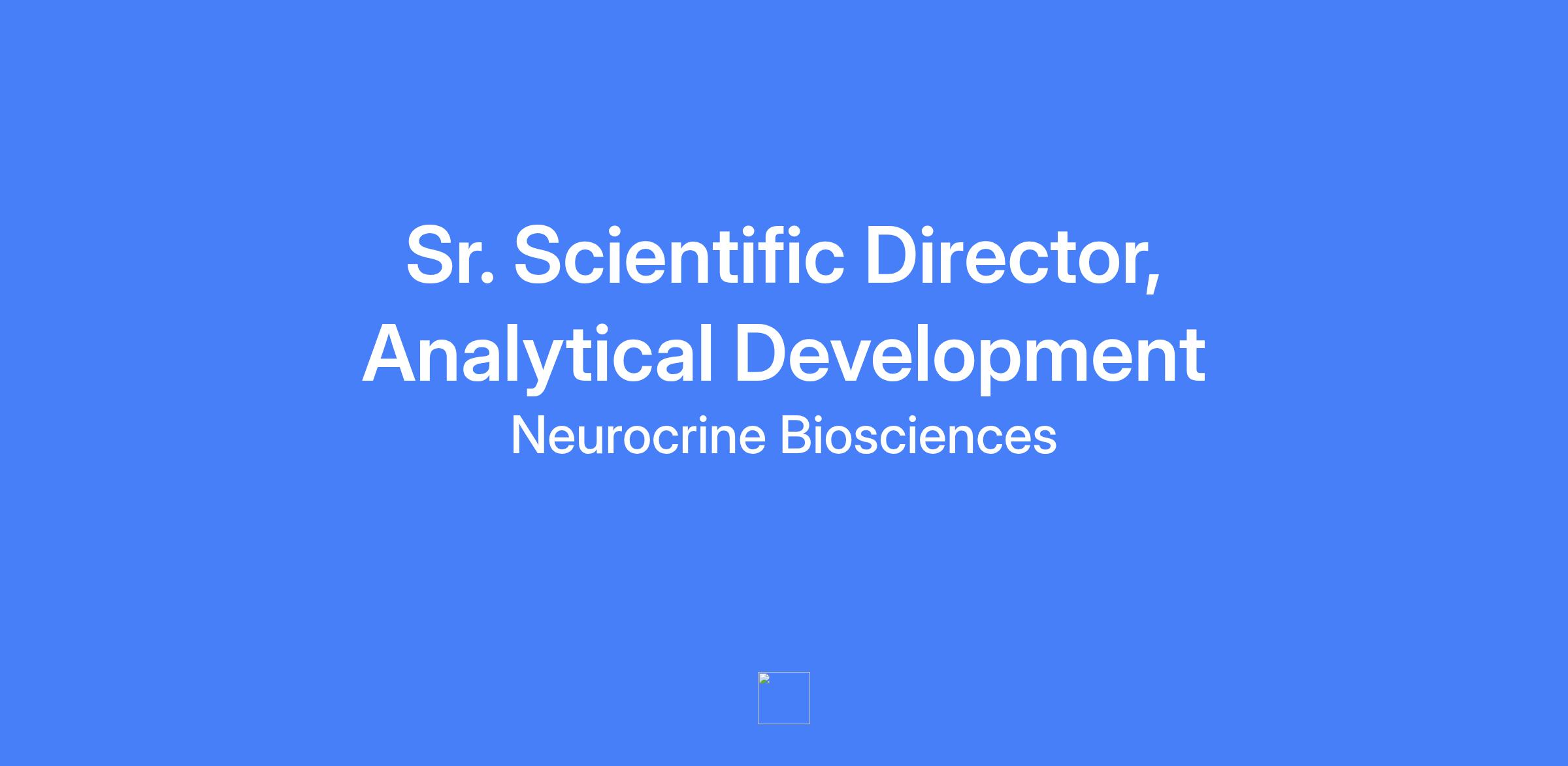 Sr. Scientific Director, Analytical Development at Neurocrine Biosciences. Recognized as an internal and external strategic scientific expert and leader in advanced analytical technologies for CMC development. Leads analytical method development, validation/qualification/transfer, stability studies, specification setting, and regulatory submissions to support clinical manufacturing and development from preclinical to commercialization.