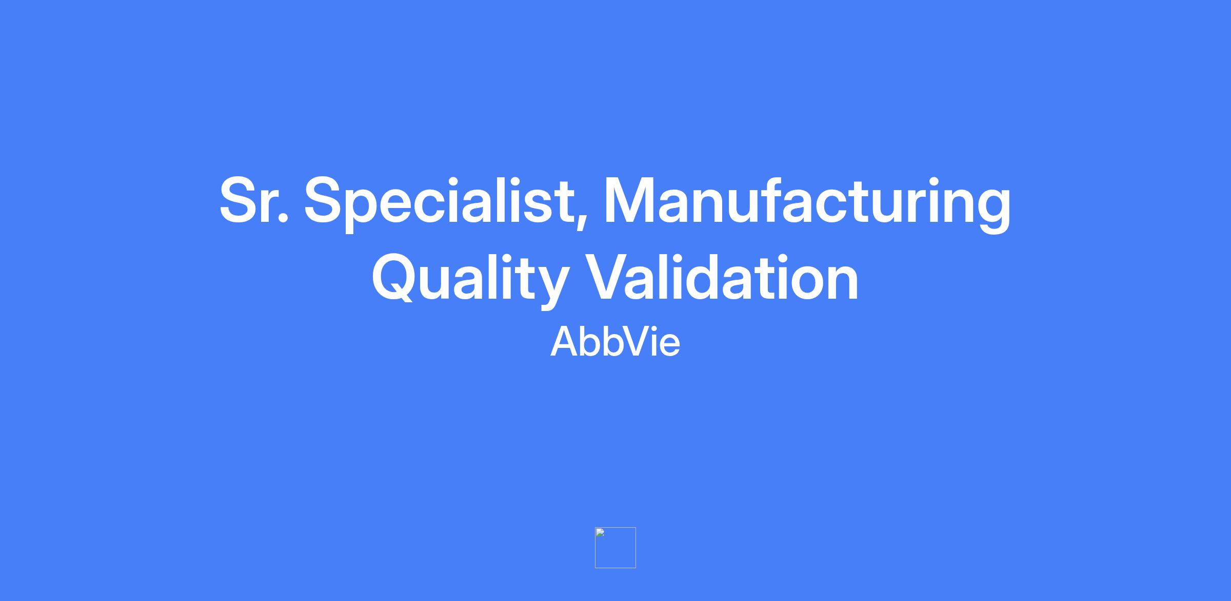 Sr. Specialist, Manufacturing Quality Validation. Primary responsibility for the Quality oversight and overall approval of validation and engineering change management activities. The Validation engineering department will support the implementation of the Validation quality program, and will independently manage 5+ key projects simultaneously.