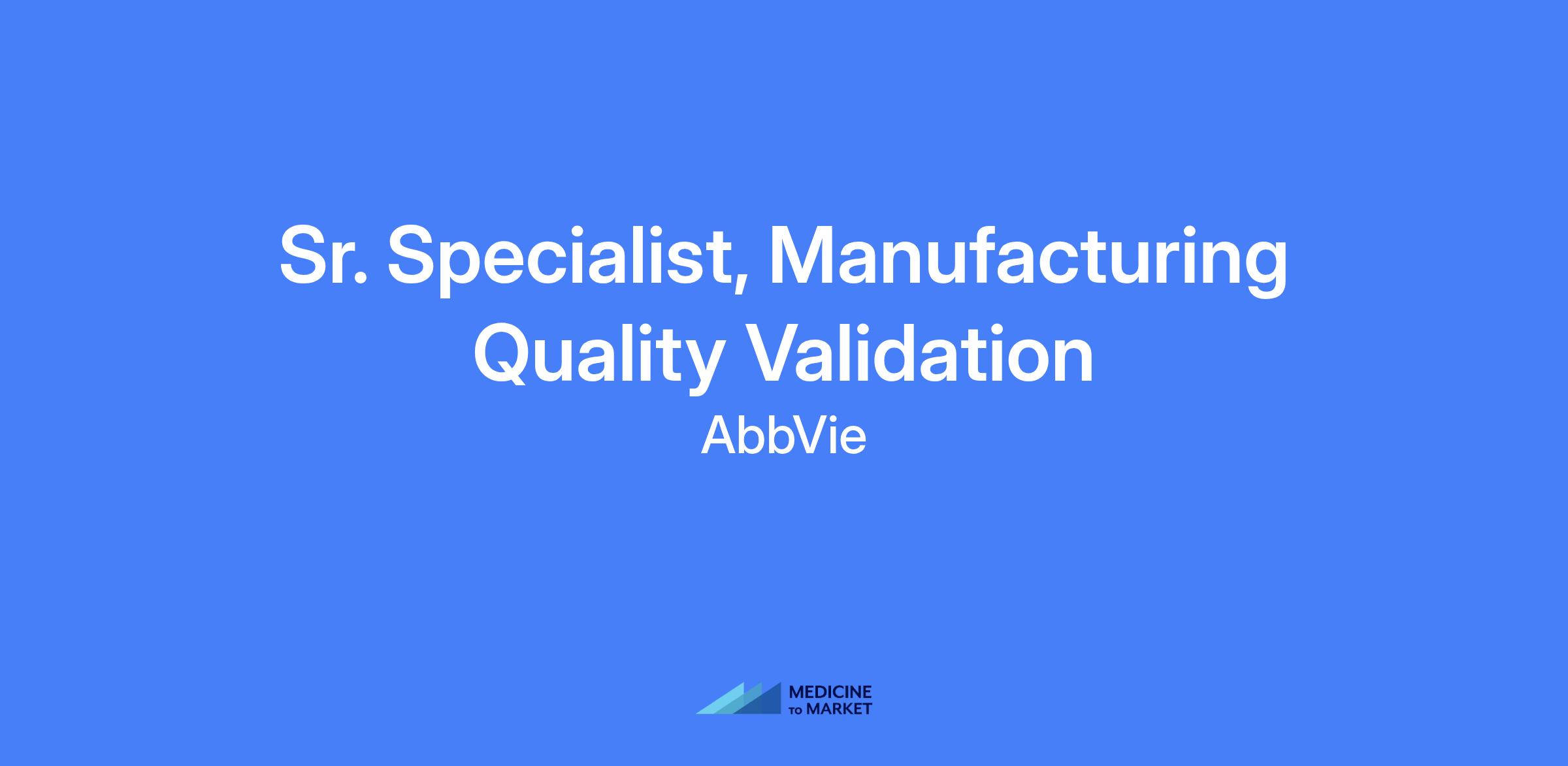 Sr. Specialist, Manufacturing Quality Validation. Primary responsibility for the Quality oversight and overall approval of validation and engineering change management activities. The Validation engineering department will support the implementation of the Validation quality program, and will independently manage 5+ key projects simultaneously.
