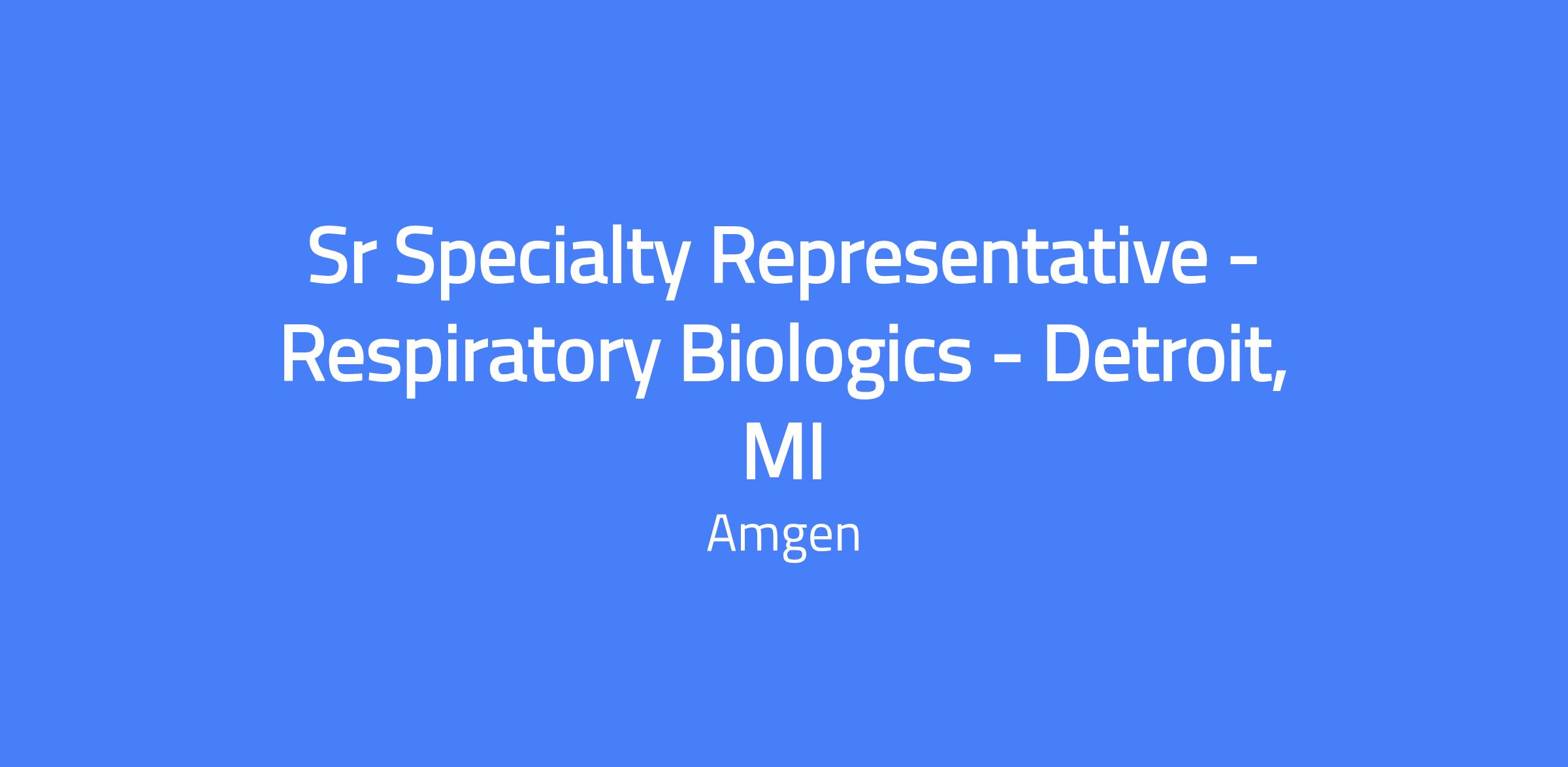 Sr Specialty Representative - Respiratory Biologics - Detroit, MI
