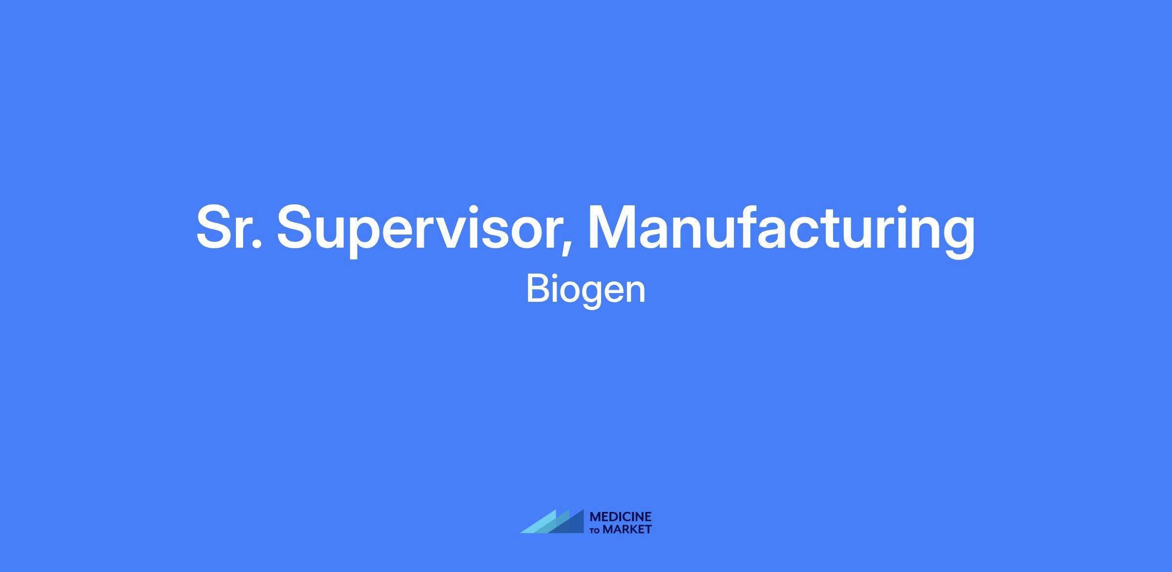 Sr. Supervisor, Manufacturing. This role supervises the manufacturing of clinical and commercial products under GMP conditions, overseeing Night shift operations, drafting and reviewing manufacturing documents, troubleshooting, and coordinating with multiple departments on a 12-hour Night shift (2-2-3 schedule).