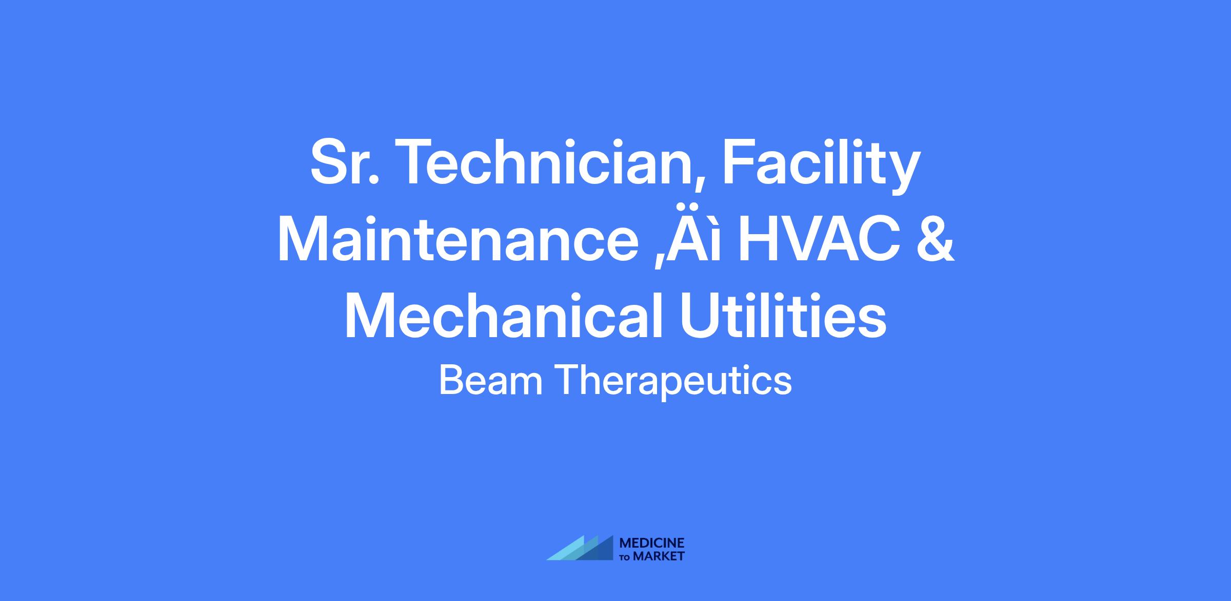 Sr. Technician, Facility Maintenance – HVAC & Mechanical Utilities. TheBeam facility in Research Triangle Park is seeking an experienced maintenance professional to service HVAC and associated site utility systems, support start-up and manufacturing tasks, coordinate maintenance and site services vendors, and execute the preventive maintenance and reliability program.