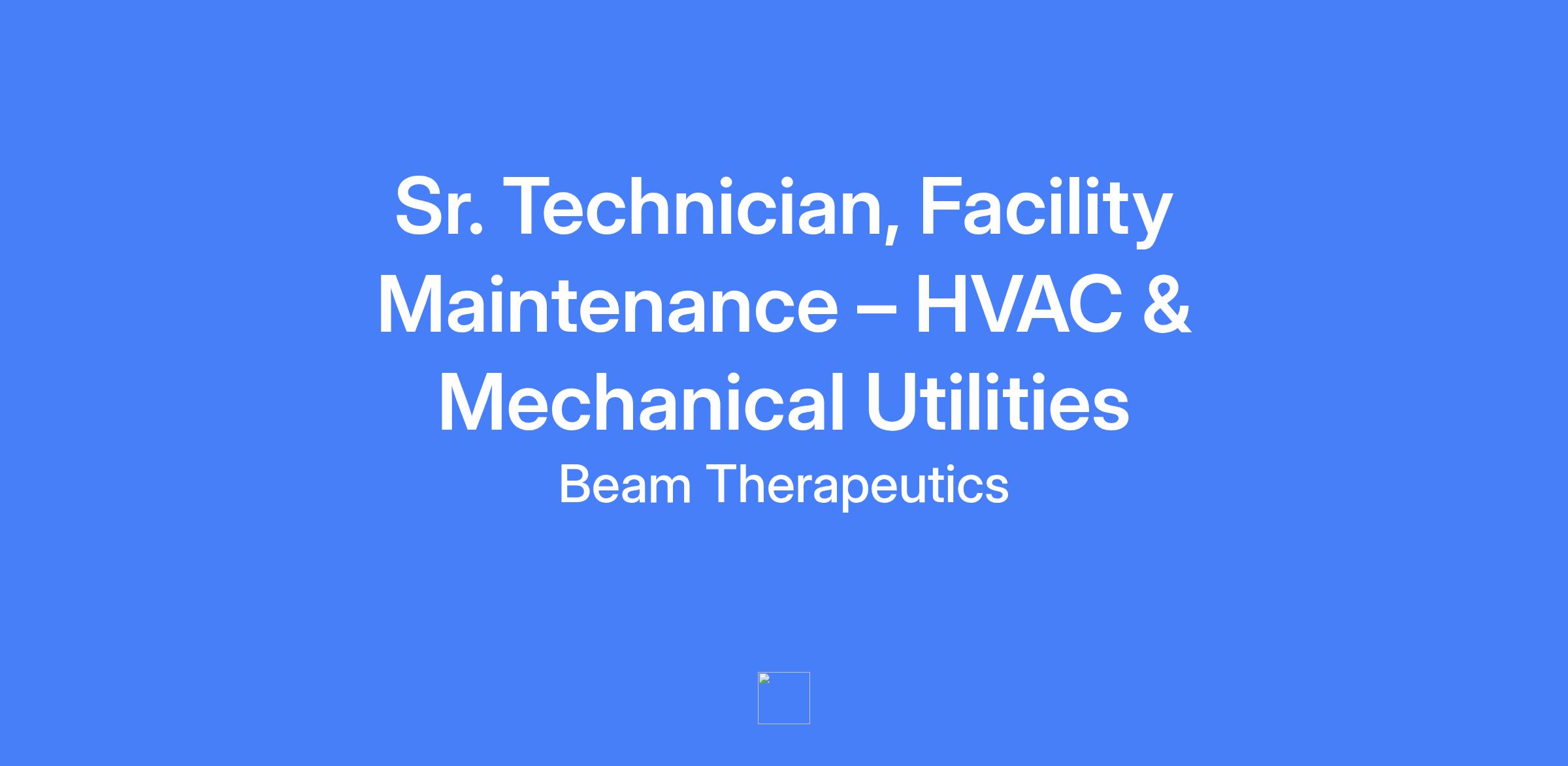 Sr. Technician, Facility Maintenance – HVAC & Mechanical Utilities. TheBeam facility in Research Triangle Park is seeking an experienced maintenance professional to service HVAC and associated site utility systems, support start-up and manufacturing tasks, coordinate maintenance and site services vendors, and execute the preventive maintenance and reliability program.