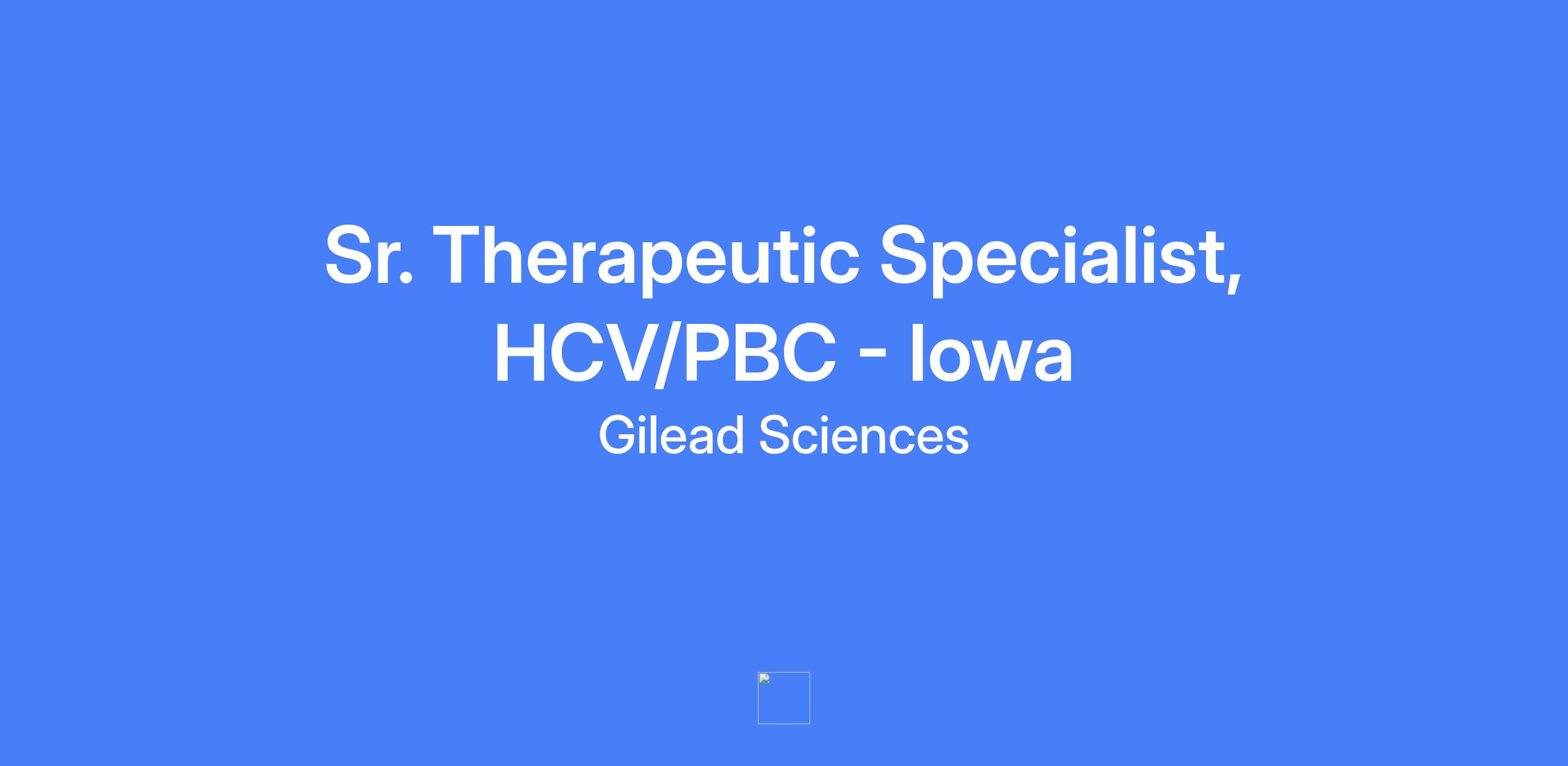 Senior Therapeutic Specialist β HCV/PBC, responsible for representing Gilead's products to a defined customer base, driving sales within a specified geographic area, and building strong relationships with healthcare practices to provide disease awareness information and clinical education. This role requires understanding the disease state and competitive products, and tailoring communications to diverse audiences across the Iowa territory.