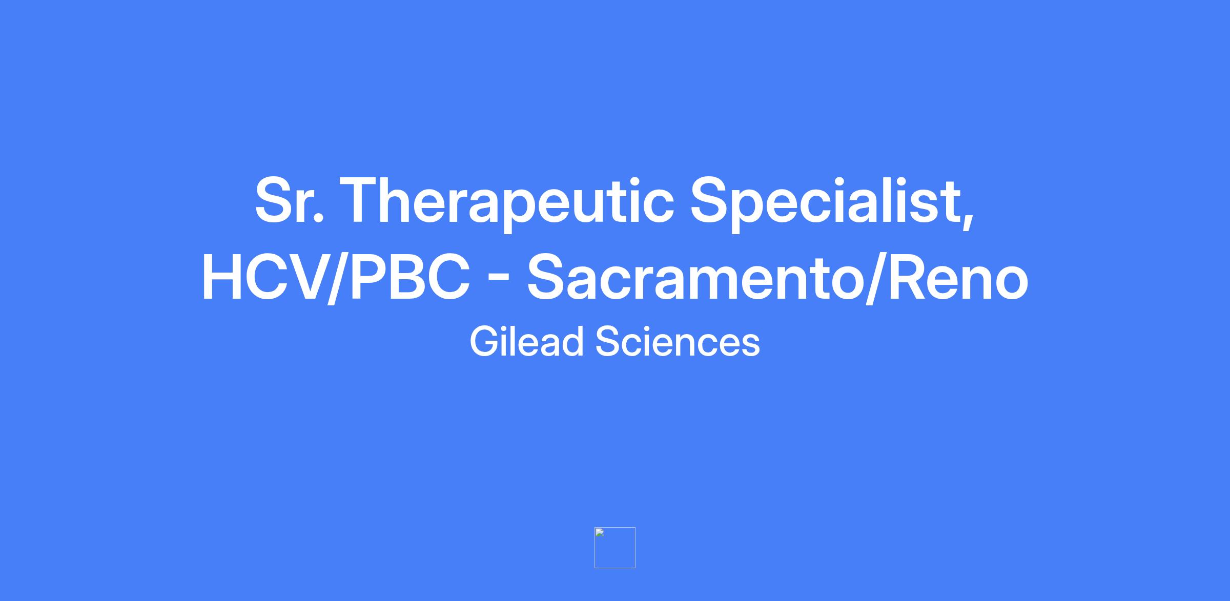 Senior Therapeutic Specialist – HCV/PBC for the Sacramento/Reno territory. Responsible for representing Gilead's products and services to a defined customer base, generating and growing sales, and achieving or exceeding sales targets within a specific geographic area. Establishes strong relationships with healthcare practices to provide disease awareness information, clinical updates, and healthcare changes, and synthesizes complex clinical concepts for diverse audiences.