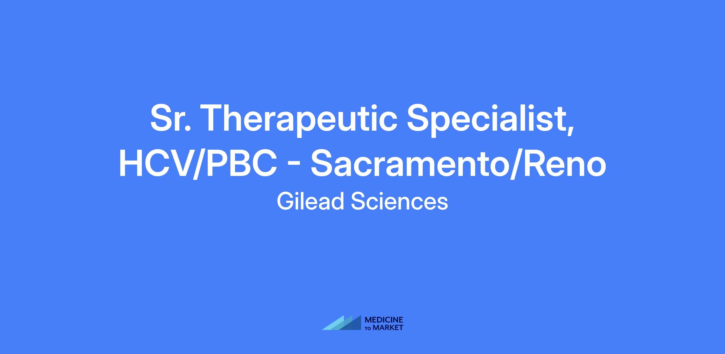 Senior Therapeutic Specialist – HCV/PBC for the Sacramento/Reno territory. Responsible for representing Gilead's products and services to a defined customer base, generating and growing sales, and achieving or exceeding sales targets within a specific geographic area. Establishes strong relationships with healthcare practices to provide disease awareness information, clinical updates, and healthcare changes, and synthesizes complex clinical concepts for diverse audiences.