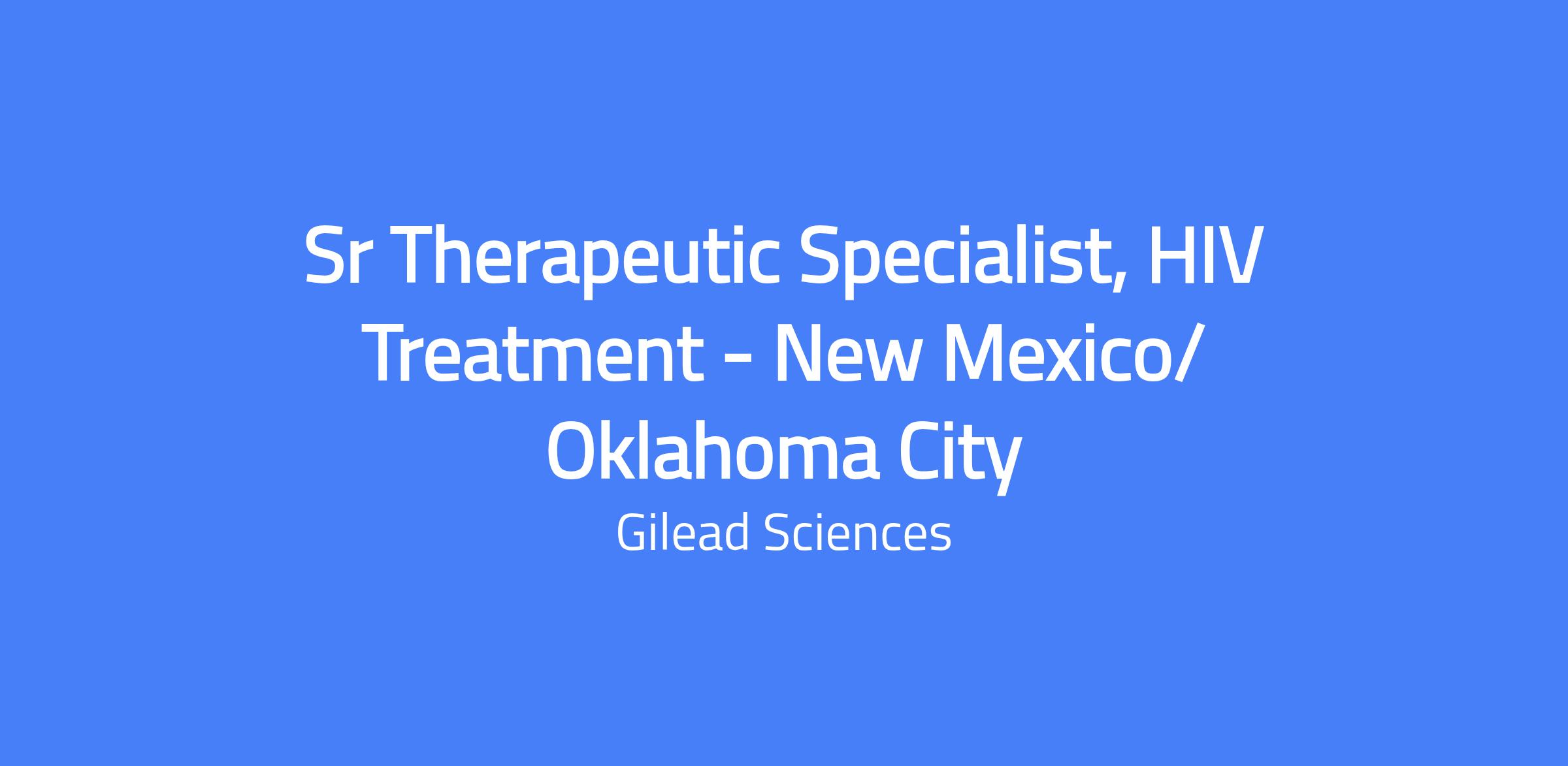 Senior Therapeutic Specialist for HIV Treatment in New Mexico and/or Oklahoma City. Represent Gilead’s products and services to a defined customer base and drive sales growth through account management and in-person engagement with healthcare practices. Travel within the assigned area is expected.