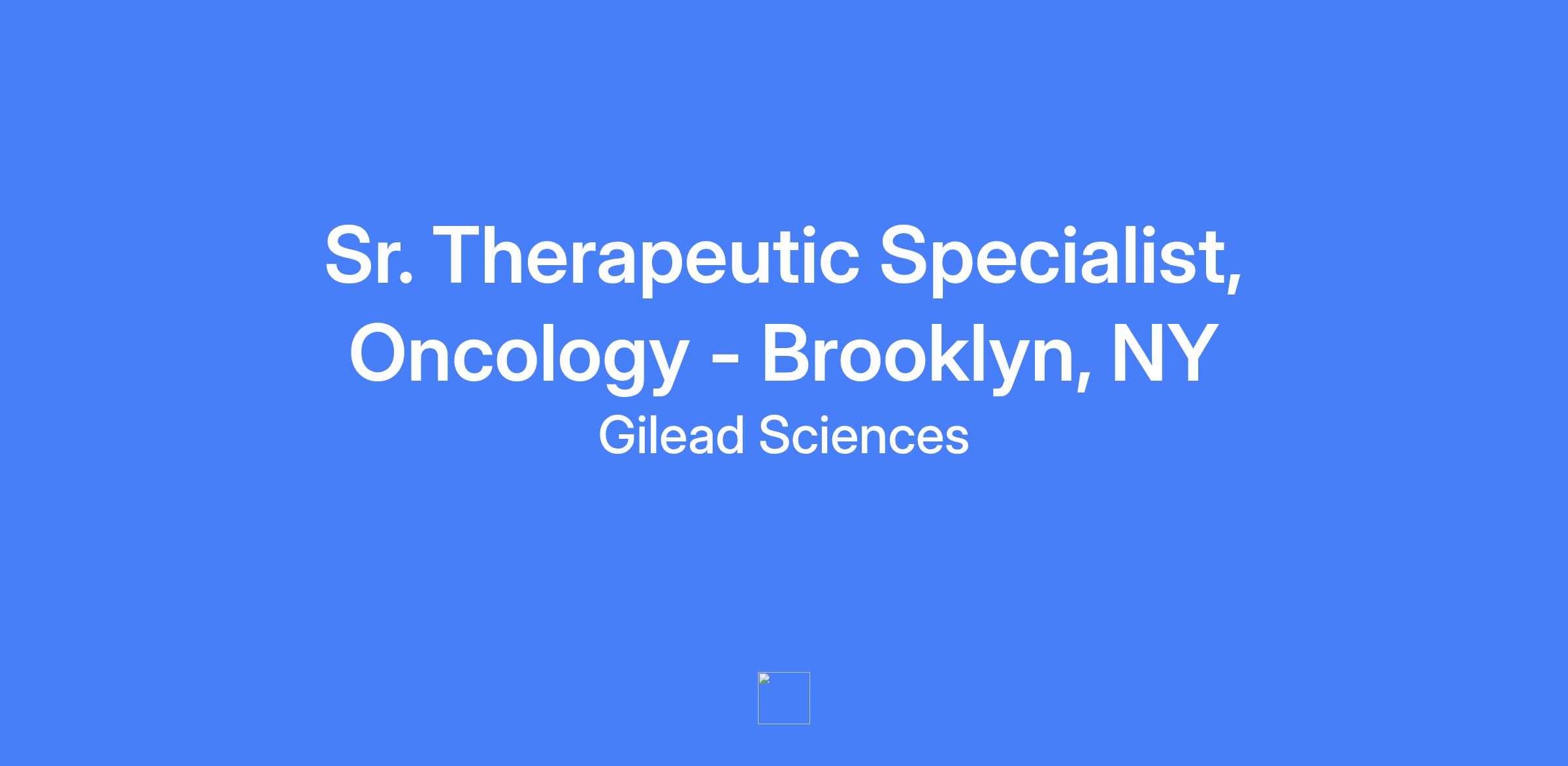 Sr. Therapeutic Specialist, Oncology - Brooklyn, NY. Represents Gilead's oncology products and services to a defined customer base, generating and growing sales within a specific geographic area, including in-person and face-to-face interactions with healthcare practitioners. Builds relationships with healthcare practices, delivers disease awareness information and clinical updates, and facilitates patient access to treatment. Requires strong communication, presentation skills, and ability to synthesize complex clinical concepts for diverse audiences.