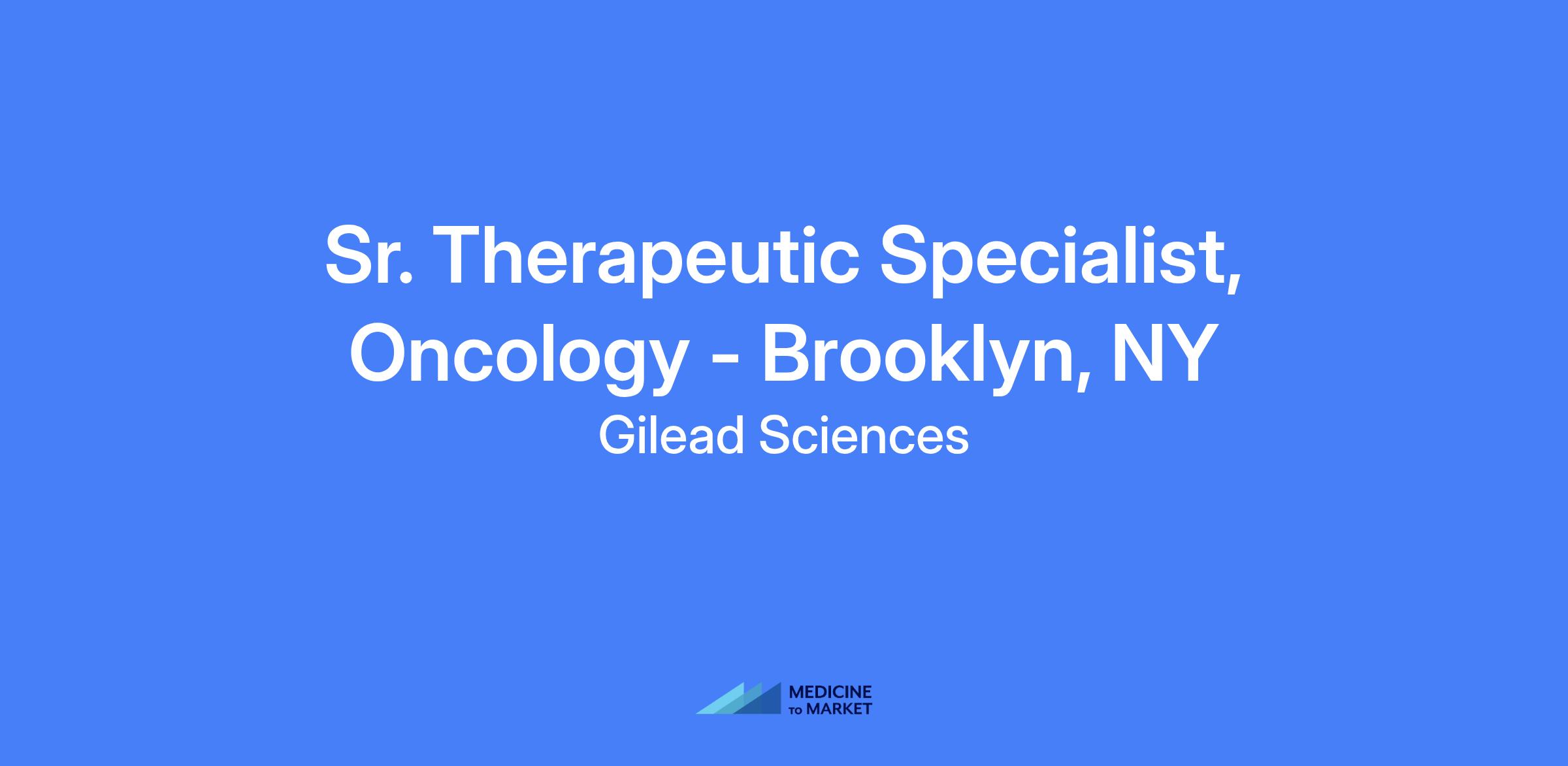 Sr. Therapeutic Specialist, Oncology - Brooklyn, NY. Represents Gilead's oncology products and services to a defined customer base, generating and growing sales within a specific geographic area, including in-person and face-to-face interactions with healthcare practitioners. Builds relationships with healthcare practices, delivers disease awareness information and clinical updates, and facilitates patient access to treatment. Requires strong communication, presentation skills, and ability to synthesize complex clinical concepts for diverse audiences.