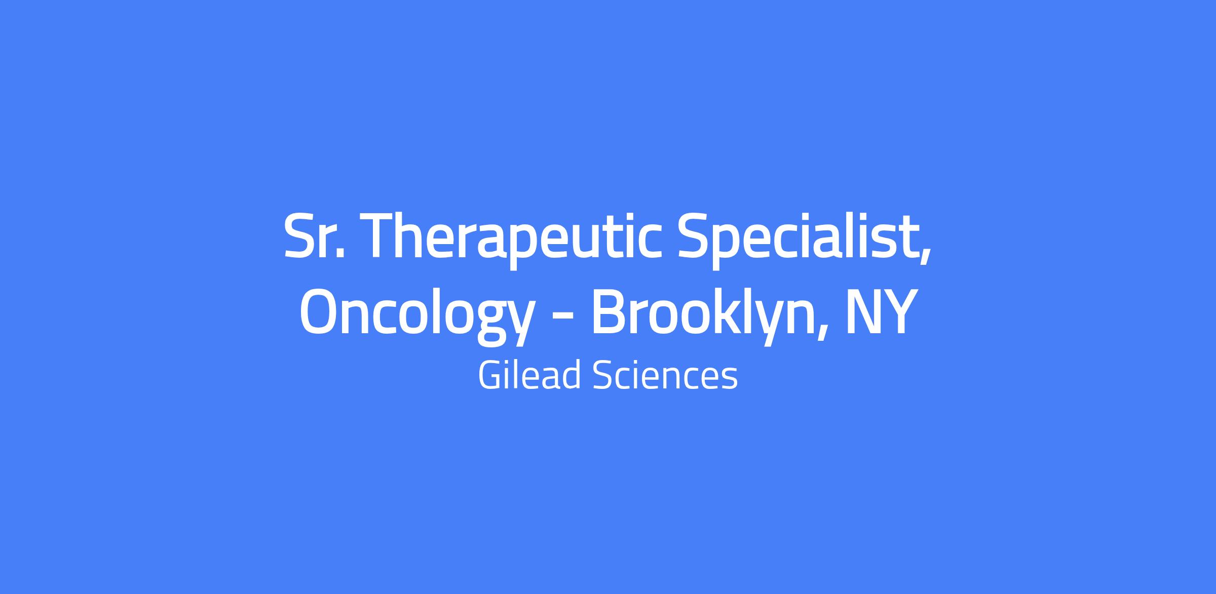 Senior Therapeutic Specialist, Oncology, represents Gilead's products and services to a defined customer base within a specific geographic area, with a focus on achieving or exceeding sales targets. The role involves in-person representation and meetings with healthcare practitioners, building strong relationships with practices to provide disease awareness information, clinical updates, and healthcare changes. This opportunity covers the Brooklyn, NY territory.
