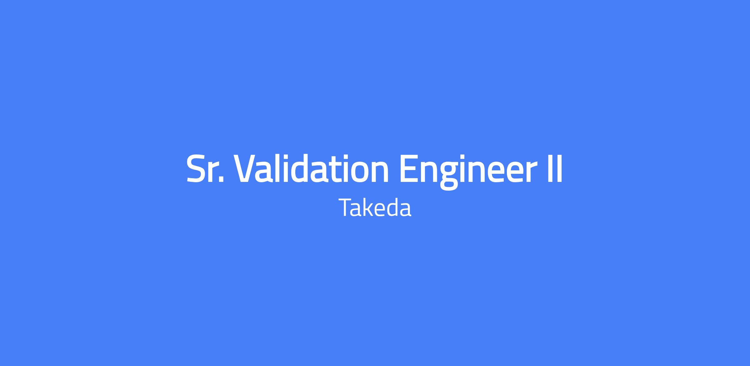 - Required: BS engineering with a minimum of 10+ yearsβ experience in validation.