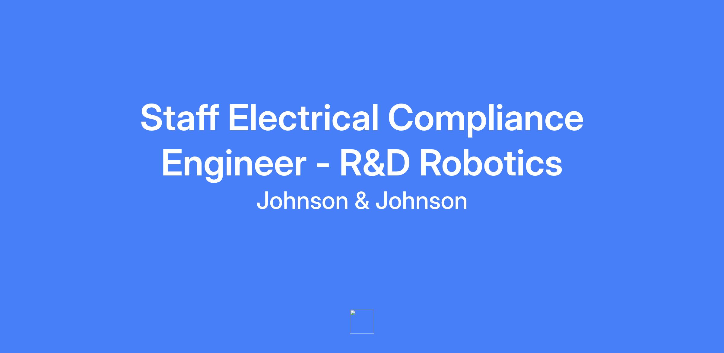 Staff Electrical Compliance Engineer located in Santa Clara, CA, focusing on IEC 60601 device compliance, EMC testing, and Regulatory submissions within Johnson & Johnsonโs Robotics and Digital Solutions group.